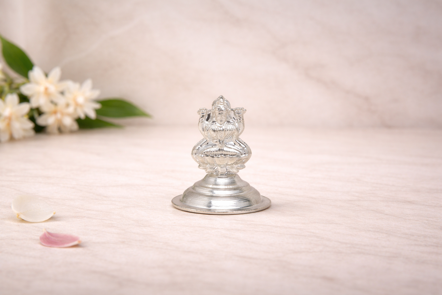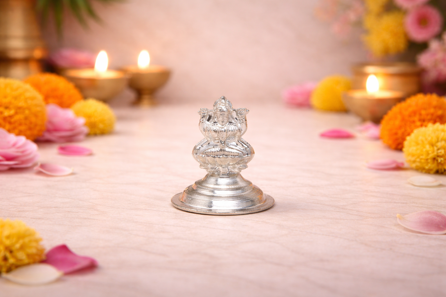 The Agarbatti Stand E Silver Agarbatti Stand is an elegantly crafted devotional accessory from the Religious Items Collection, designed to enhance the sanctity and calm of everyday pooja rituals. Featuring a finely sculpted idol form seated on a stable, tiered base, this agarbatti stand reflects traditional symbolism combined with functional design.