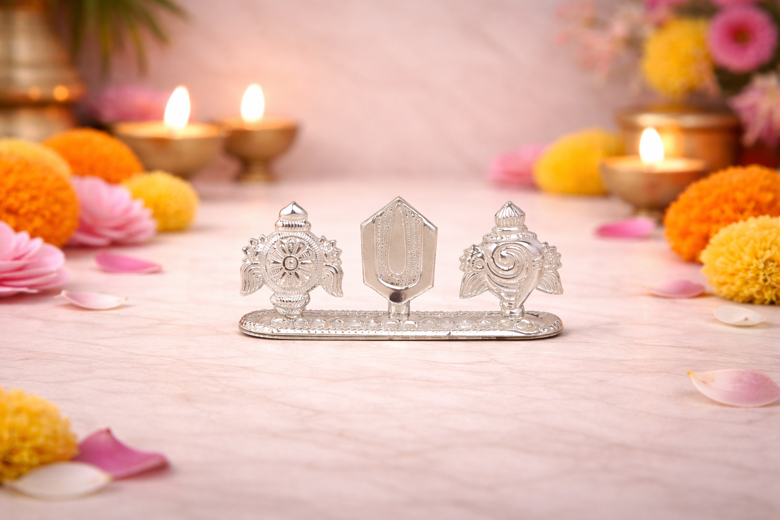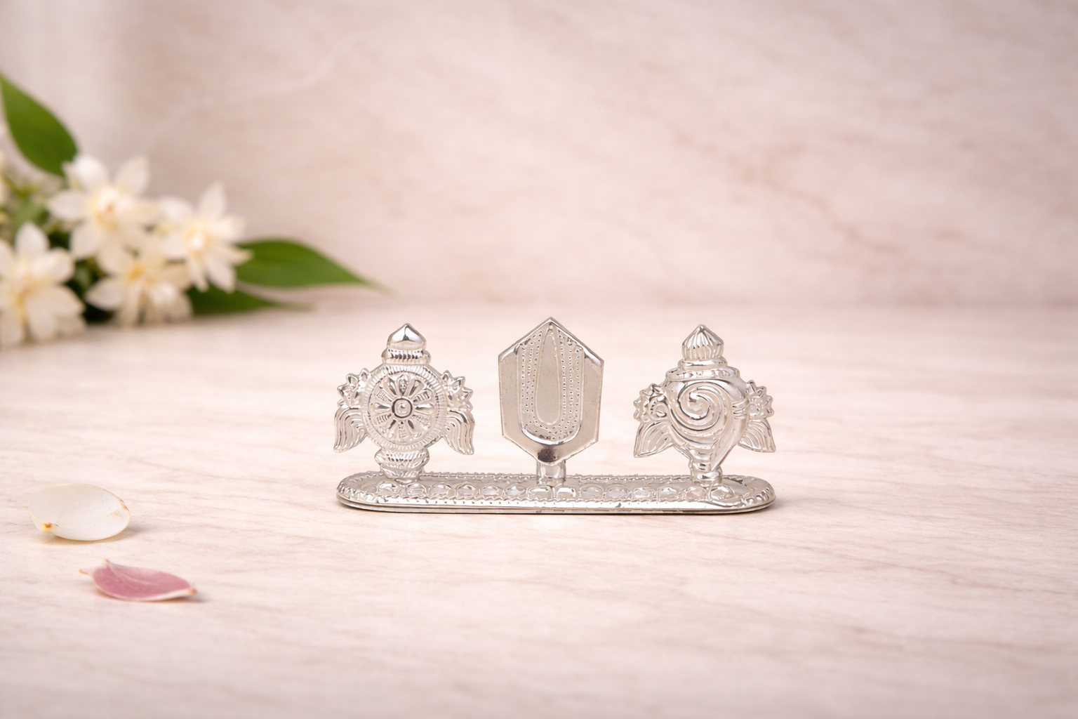 The Agarbatti Stand F Silver Agarbatti Stand is a finely detailed devotional accessory from the Religious Items Collection, designed to bring symbolic meaning and visual harmony to everyday pooja rituals. Featuring a structured horizontal form with traditional sacred motifs mounted on a stable base, this agarbatti stand offers a distinctive blend of spiritual representation and functional design.