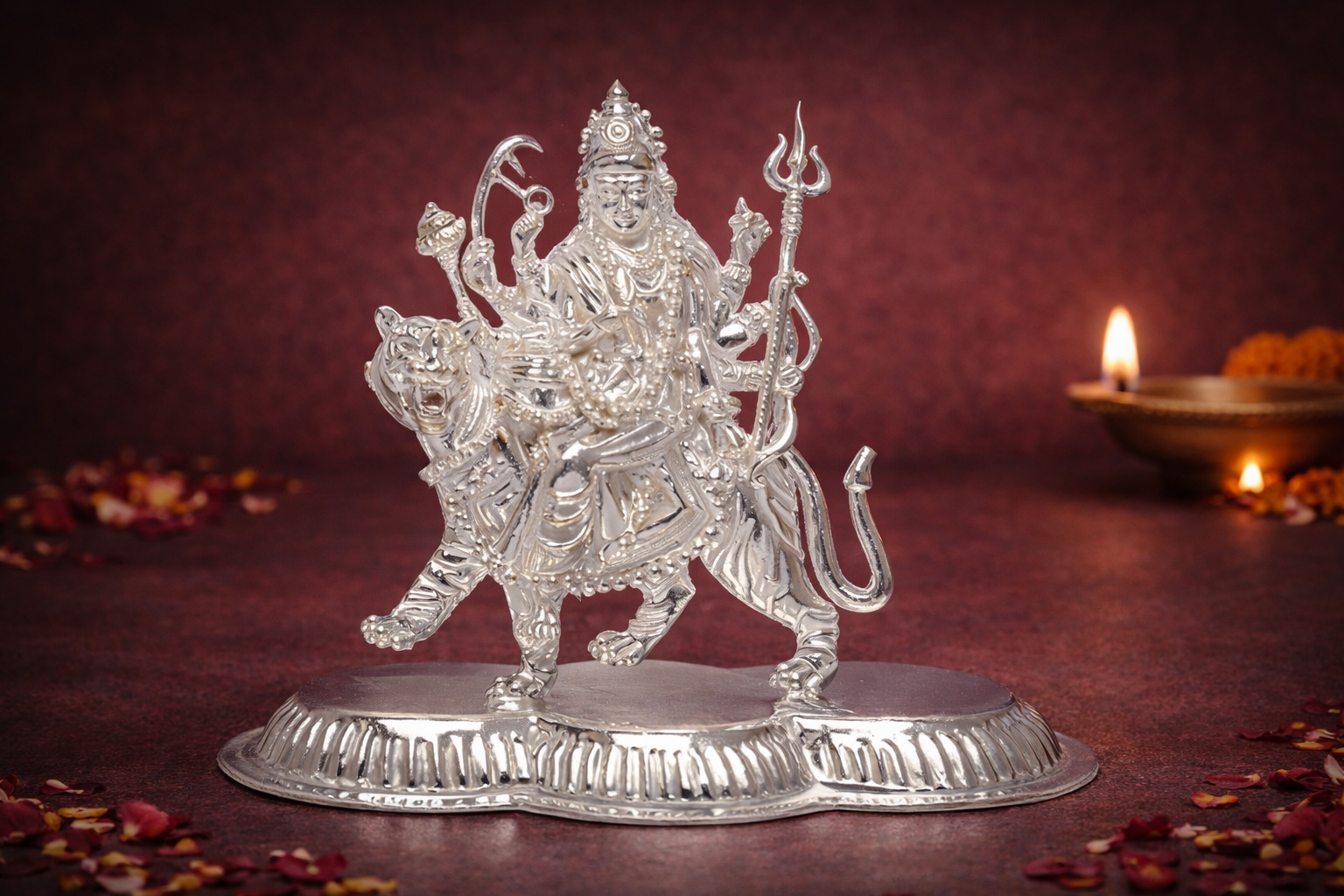 This Ambika silver idol is highly suitable for Navratri pooja, housewarming ceremonies, business inaugurations, religious gifting, and spiritual décor.
