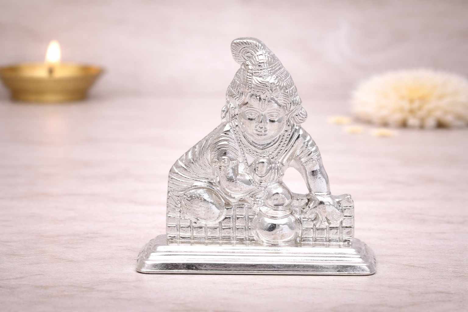 The solid casting construction ensures strength, durability, and long-lasting form, making it suitable for daily worship, festive occasions such as Janmashtami, and as a thoughtful spiritual or gifting option. The idol is available in multiple weight variants, maintaining consistent craftsmanship and premium finish across all sizes.