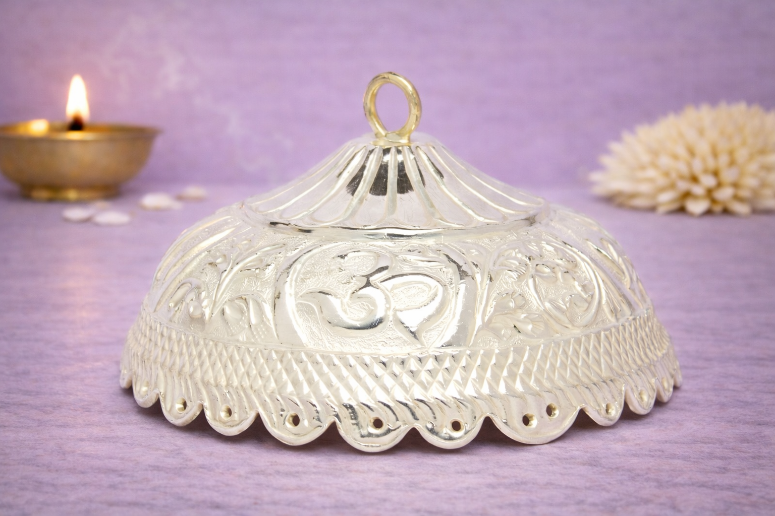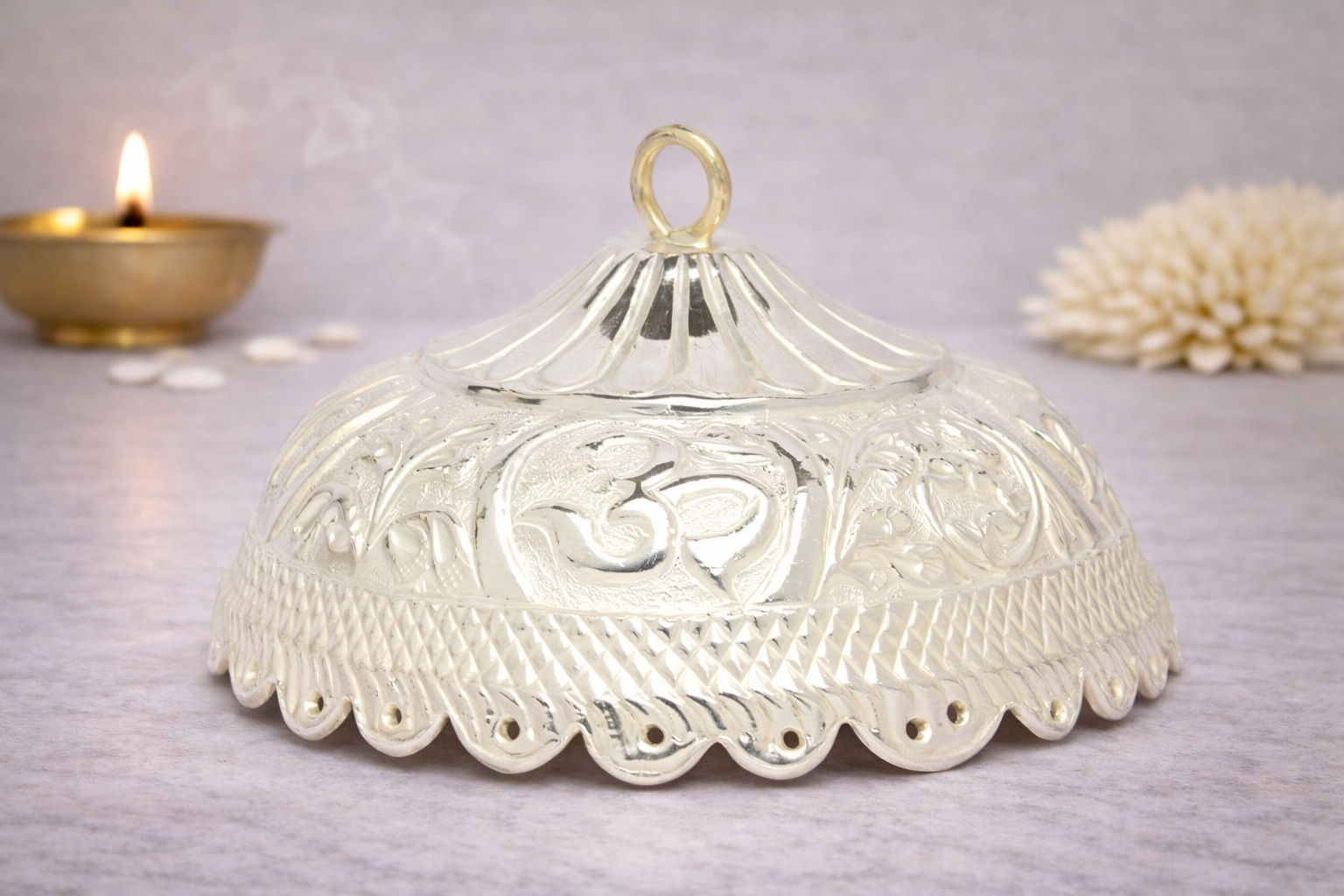 Designed with consistency in form and detailing, the Banaras Chattar is available in multiple gram-based weight variants, catering to both compact personal worship setups and larger ceremonial requirements.