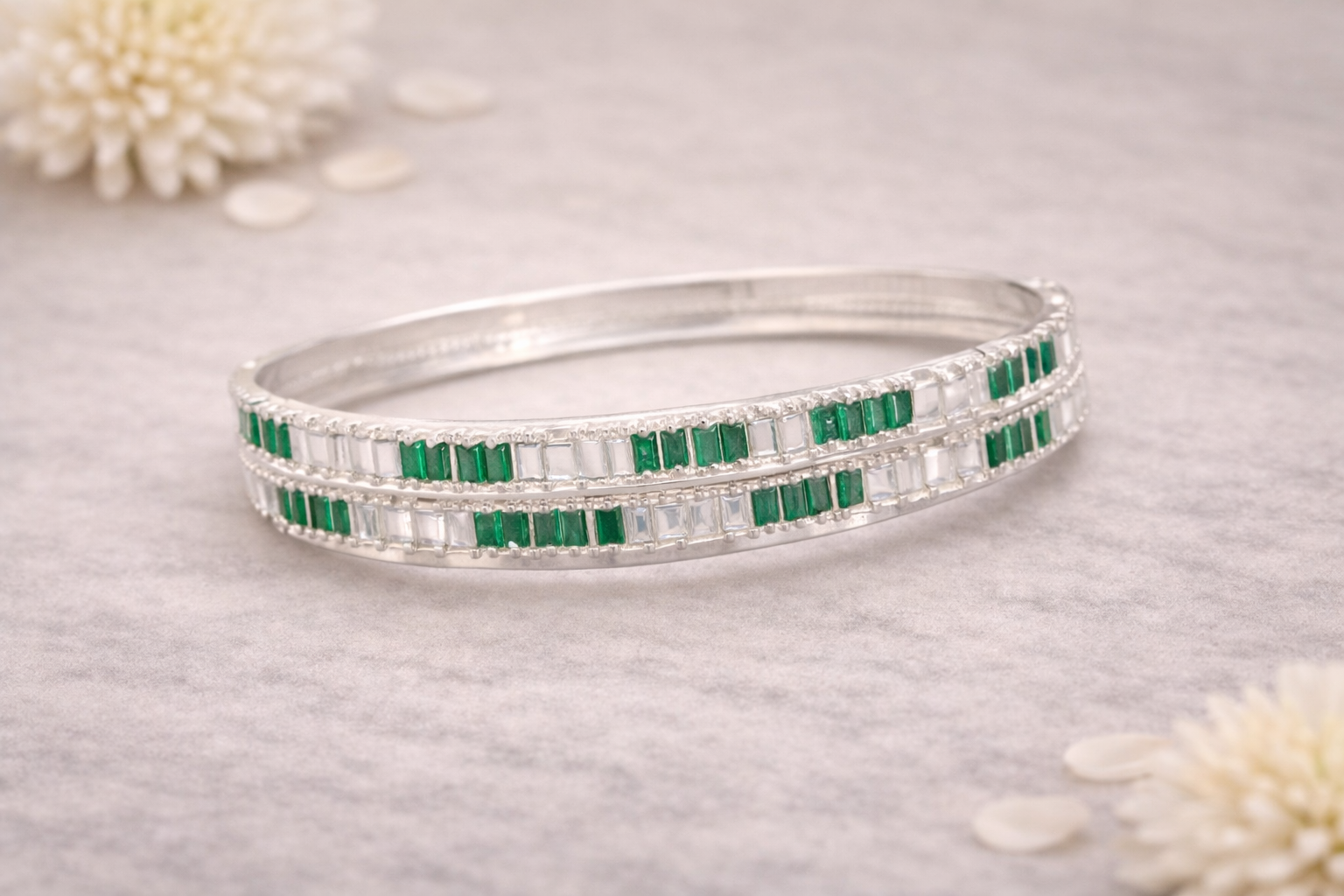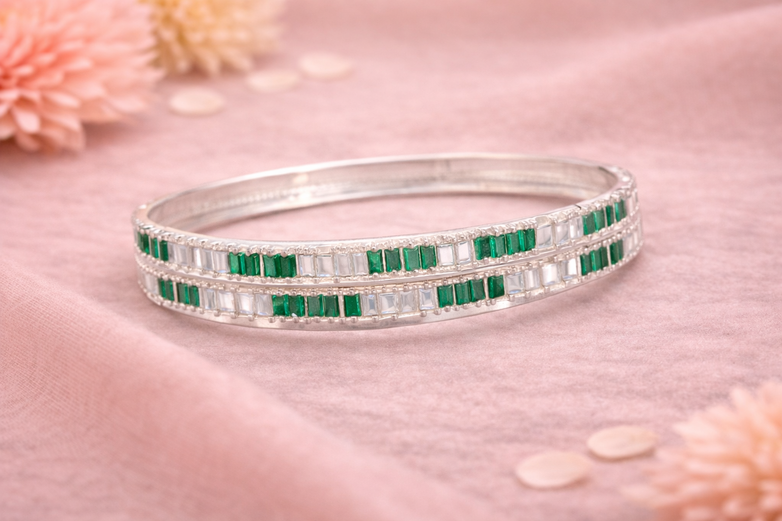 Made in 16KT silver purity, Bangles C features smooth finishing, balanced proportions, and carefully executed detailing that enhances its natural silver sheen. The sturdy yet comfortable construction ensures durability and ease of wear, making it ideal for long hours during weddings, festivals, religious functions, and special occasions.