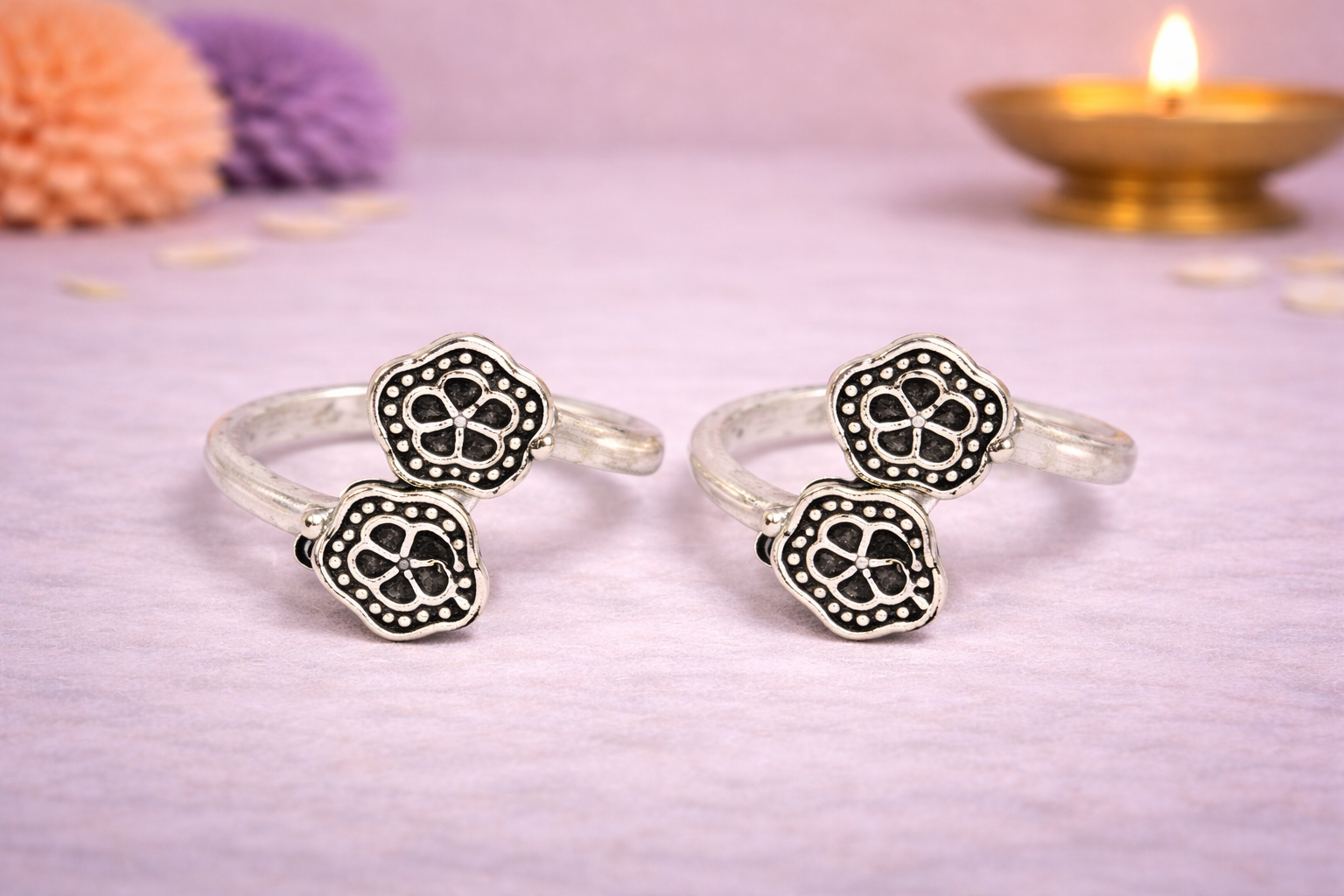 The Bichiya Silver Ornament from the Ladies Collection is a finely crafted traditional toe ring set, designed to add subtle elegance to everyday ethnic wear. Showcasing classic silver artistry, this bichiya features delicate floral motifs with oxidised detailing that reflect timeless Indian craftsmanship.