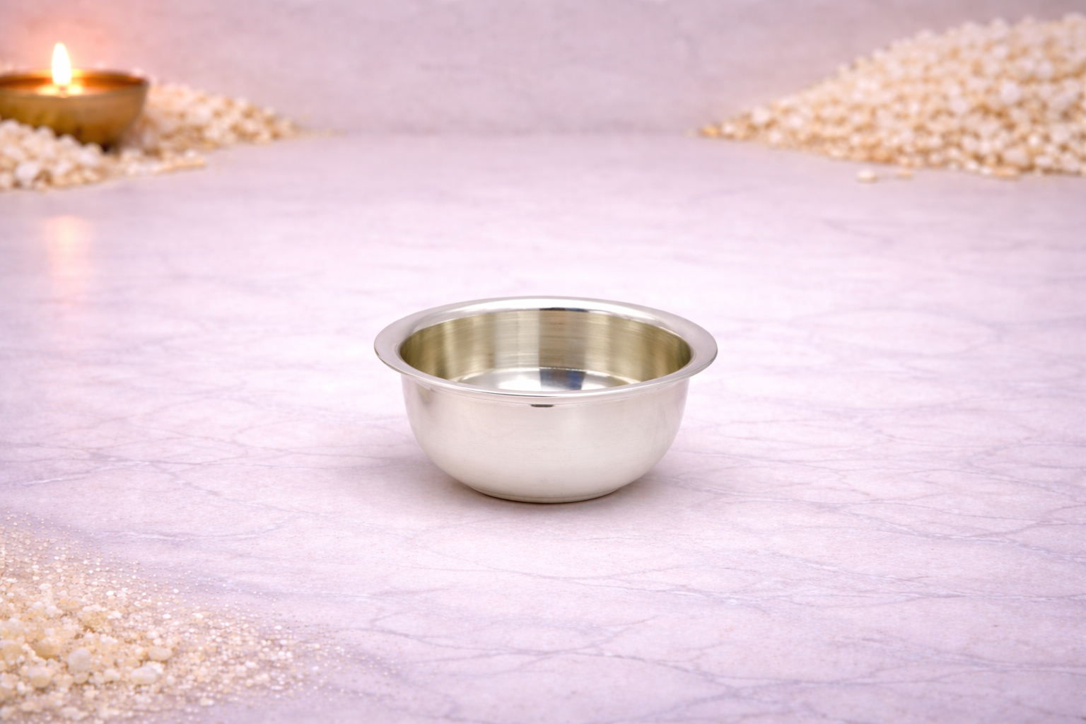 The Chanderi Vati is a refined and timeless silver bowl, thoughtfully crafted for daily household use as well as traditional rituals. Designed with smooth contours and a balanced form, this vati reflects classic Indian craftsmanship combined with practical usability. Its elegant profile makes it suitable for serving prasad, dry fruits, sweets, or for use during pooja and festive occasions.