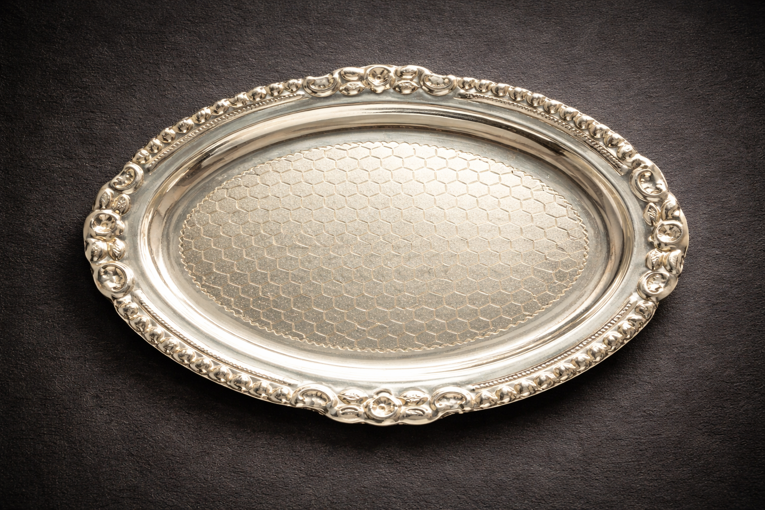 The Delhi Tray is an elegant silver household tray crafted for refined serving, ceremonial use, and sophisticated presentation. Designed with an oval silhouette and adorned with intricate floral detailing along the rim, this tray reflects classic Indian craftsmanship combined with timeless utility. Made from 14KT silver, it represents purity, durability, and understated luxury—ideal for both traditional and contemporary settings.