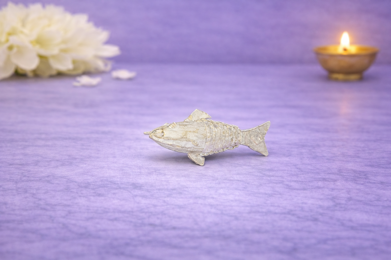 Available in multiple gram-based weight variants, the Fish silver idol offers flexibility for both personal use and gifting while maintaining consistent design quality and craftsmanship across all sizes.