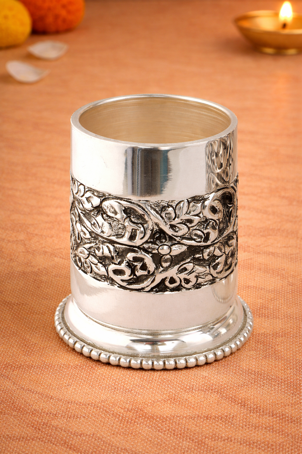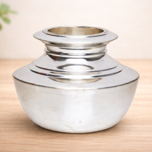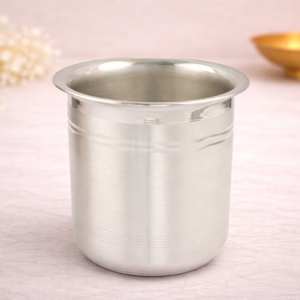 The Glass Antique Silver Tumbler is a classic household utility piece that reflects traditional Indian metal craftsmanship and timeless elegance. Designed for everyday use as well as special occasions, this silver glass is commonly used for drinking water, milk, charanamrit, or sacred liquids during rituals and religious ceremonies.