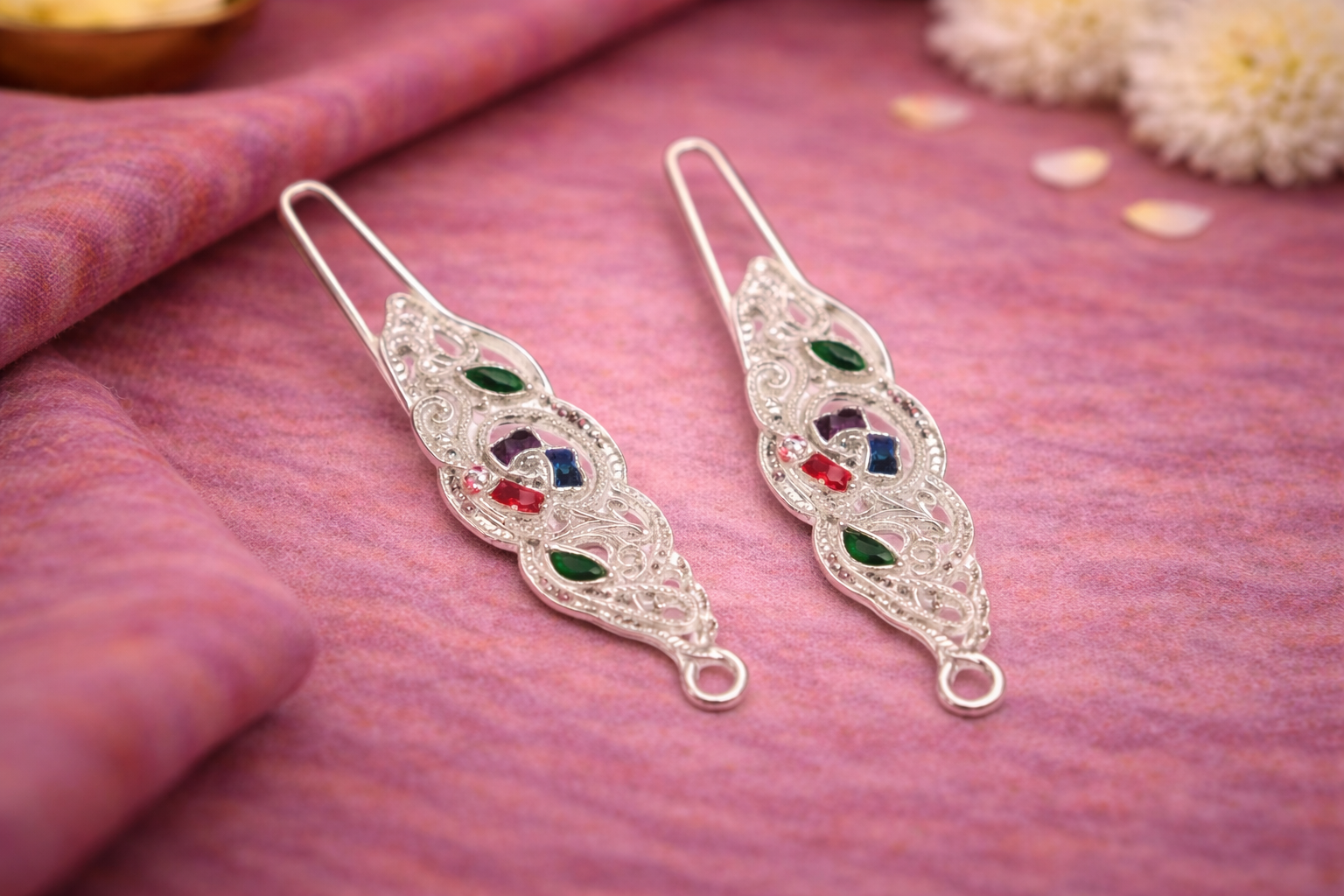 The Hair Clips from our Women’s Collection are elegant and functional silver accessories designed to add a refined traditional touch to everyday and festive hairstyles. Crafted with delicate detailing and balanced proportions, these hair clips combine aesthetic appeal with practical usability, making them suitable for both styling and adornment.