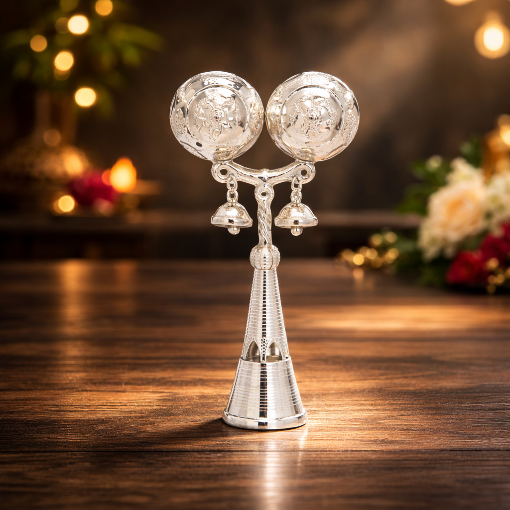 Made using high-purity 19KT silver, Jhunjhuna E features a compact, well-balanced structure with smoothly finished edges and delicately attached silver bells that produce a gentle, soothing sound. The polished silver surface maintains its natural metallic sheen without artificial coating, making it safe and suitable for babies when used under supervision.