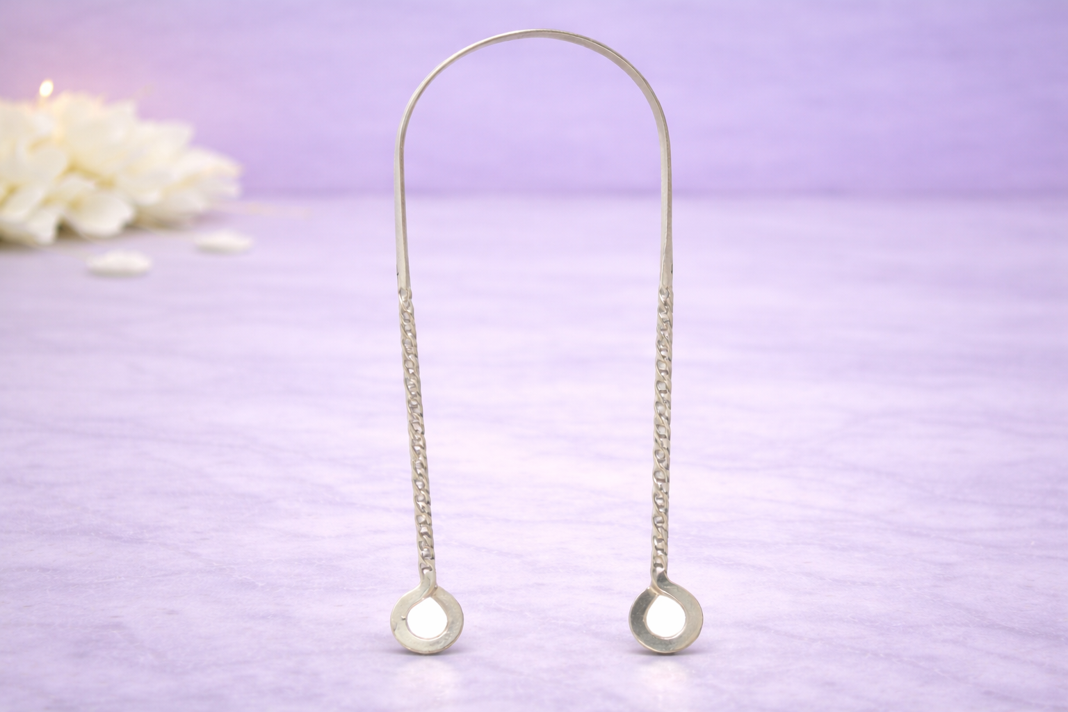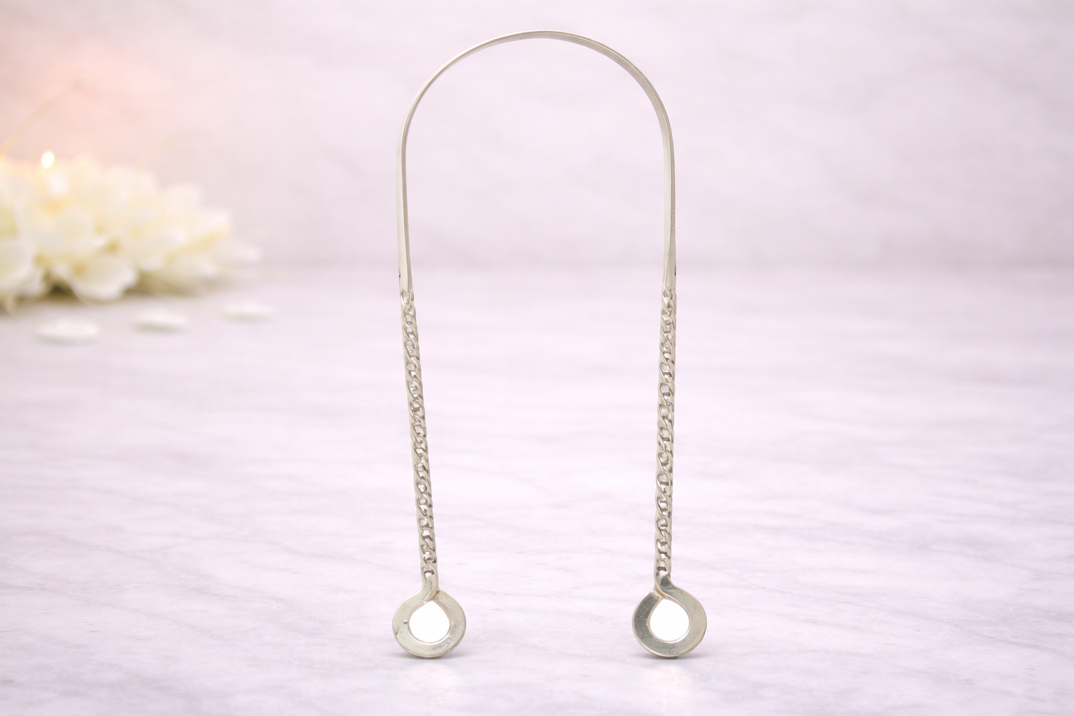 The Nakshi Jibi is a traditionally crafted silver tongue cleaner designed for daily religious and hygienic use, reflecting timeless Indian customs associated with purity and wellness. Expertly shaped with classic nakshi-style detailing, this jibi combines functional simplicity with refined craftsmanship, making it an essential accessory for personal rituals and traditional households.