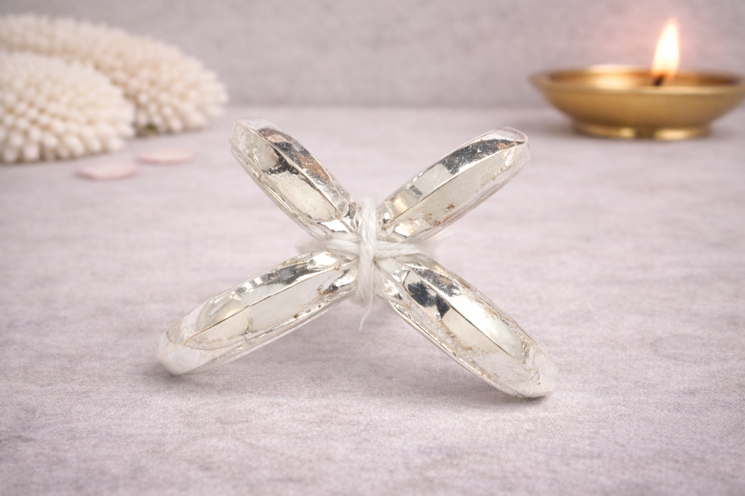 Crafted in 16KT pure silver, this Jodva features a smooth, polished finish that preserves the natural beauty and authenticity of silver. Its balanced form and subtle detailing reflect skilled artistry while maintaining everyday comfort. The elegant yet minimal design makes it suitable for regular wear as well as festive and ceremonial occasions.