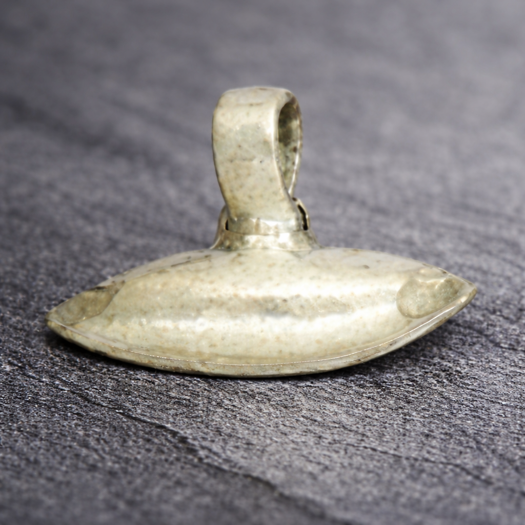 The Jutiya Silver Yantra is a traditionally crafted religious article symbolising humility, grounding, and devotion in sacred rituals. Designed in a compact, disc-like form with a raised loop for placement or attachment, this yantra reflects functional simplicity combined with devotional significance rooted in traditional worship practices.