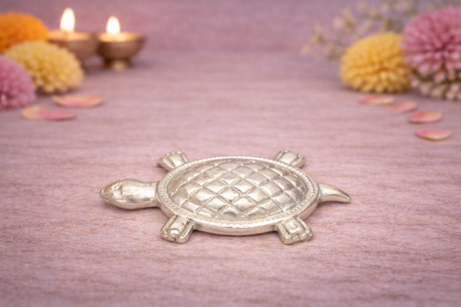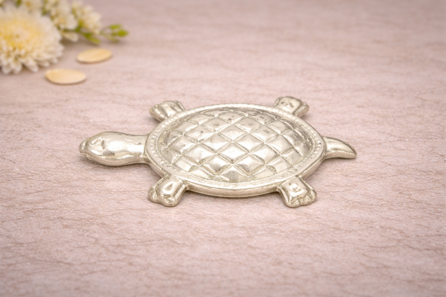 The Kachva Silver Yantra is a finely crafted religious accessory from the Religious Items Collection, symbolizing stability, protection, and prosperity in Vastu and spiritual traditions. Designed in the sacred turtle (Kachva) form, this yantra reflects traditional beliefs associated with longevity, wealth, and positive energy.