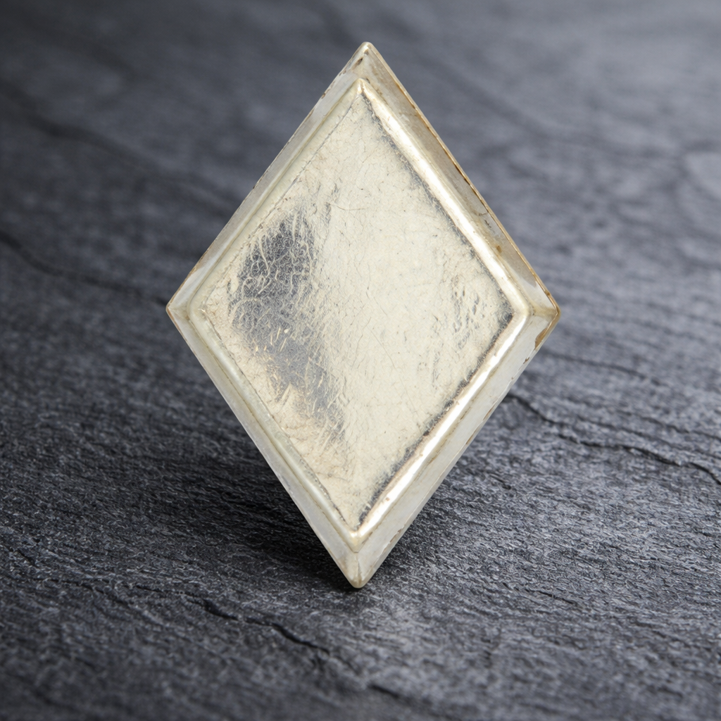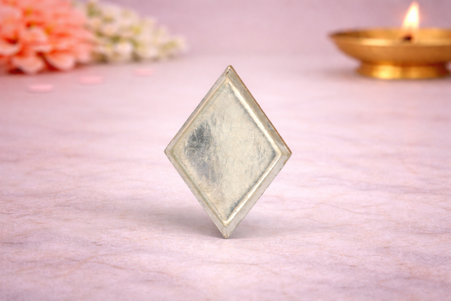 The Kajukatli Silver Khana is a finely crafted religious offering inspired by the traditional diamond-shaped sweet (kaju katli), symbolising purity, prosperity, and auspicious beginnings in devotional rituals. Designed in a clean geometric form with smooth edges and a refined surface finish, this khana reflects simplicity and sacred elegance rooted in traditional worship practices.