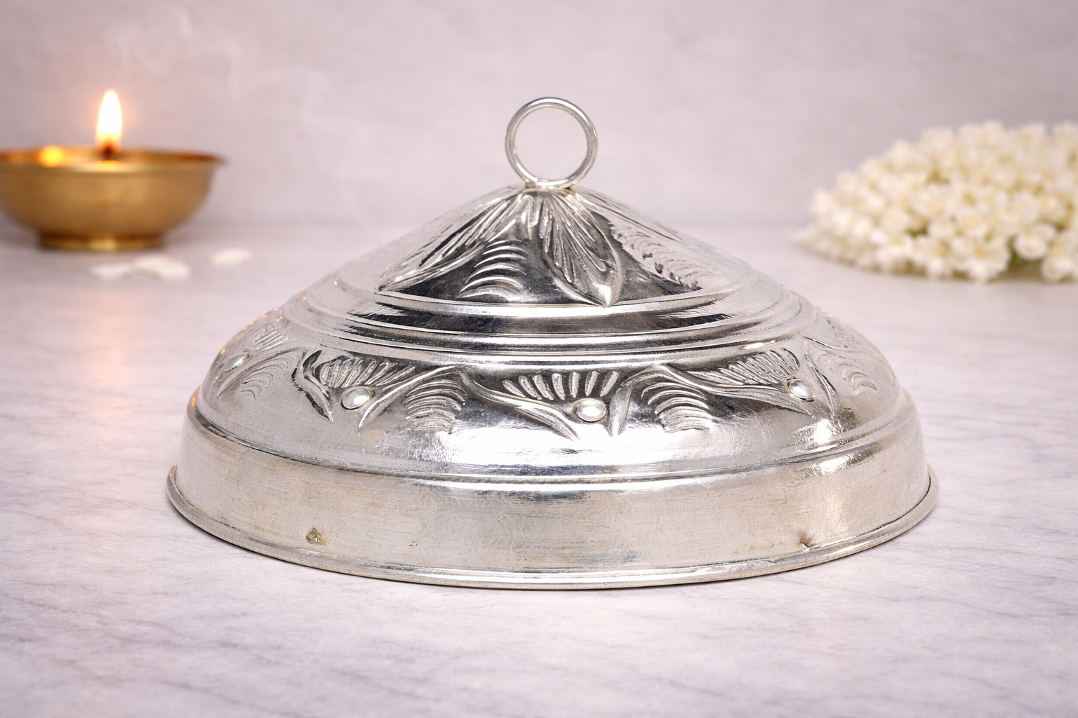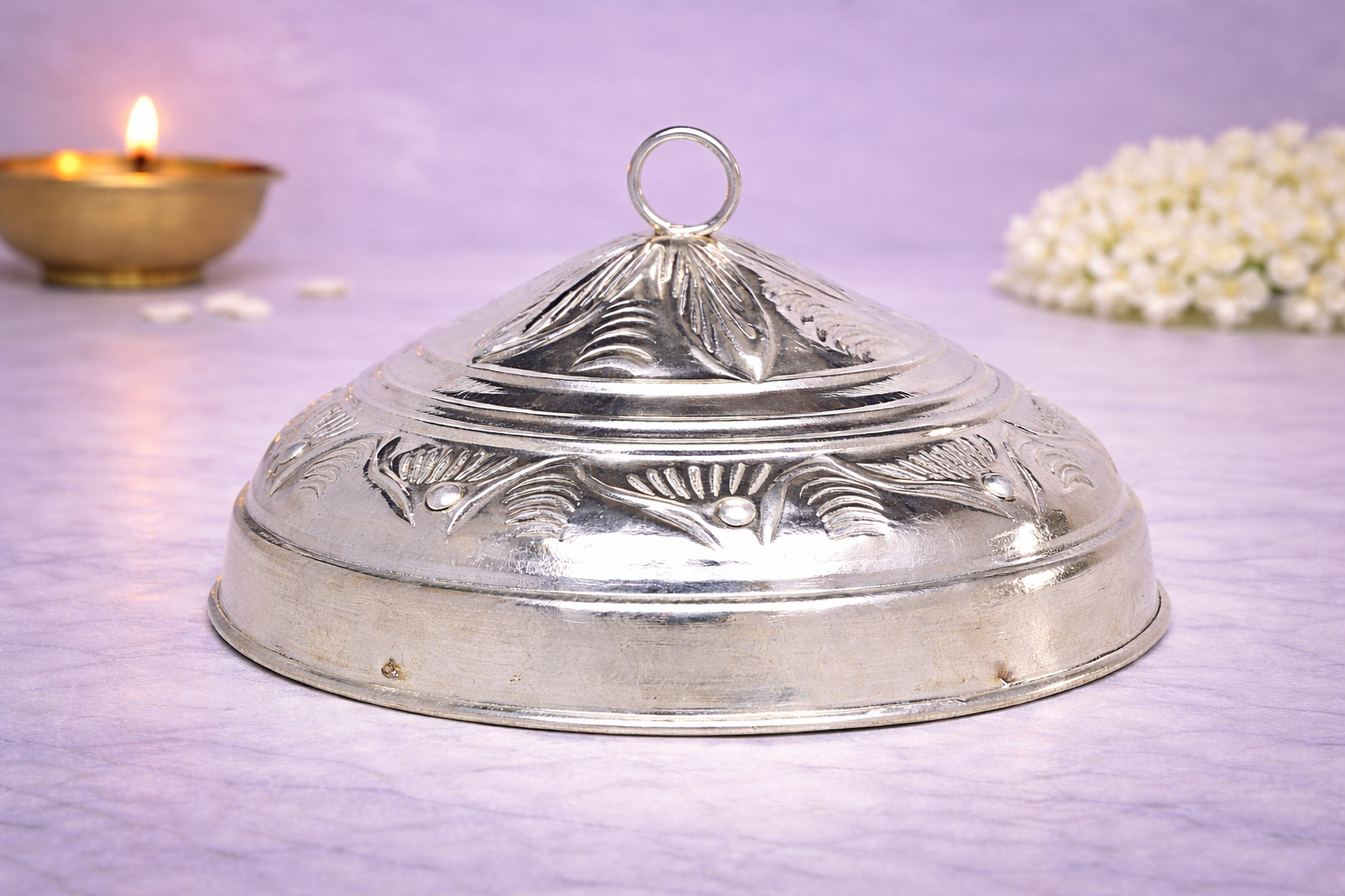 Available in multiple gram-based weight variants, the Calcutti Chattar caters to diverse ritual requirements while maintaining consistent detailing and craftsmanship across all sizes.