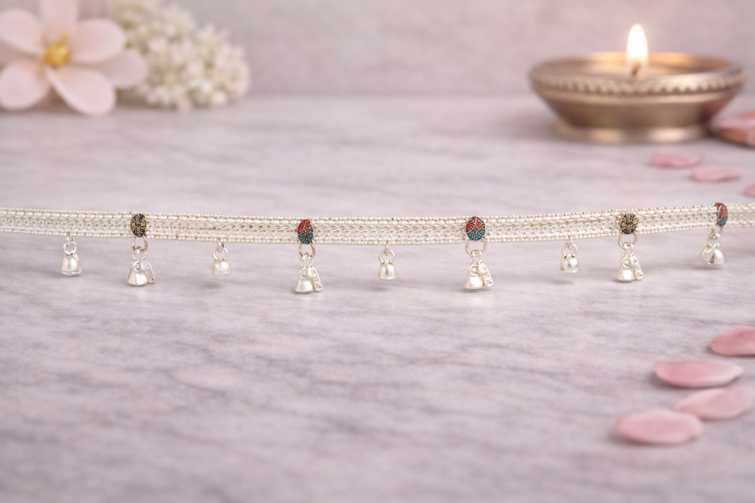 The Kandora K Silver Kandora from the Kids Collection is a delicately crafted piece designed to combine traditional symbolism with child-friendly comfort. Featuring a refined Swastik motif, this kandora represents auspiciousness, protection, and positive energy, making it a meaningful adornment for young children.