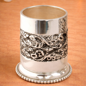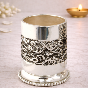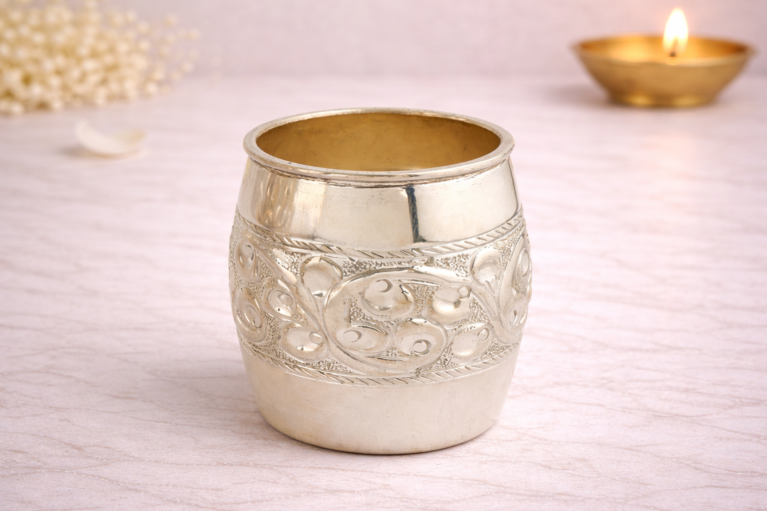 The Kunja Glass is a traditional antique silver utensil, thoughtfully crafted for ceremonial use, daily rituals, and refined household utility. Traditionally used for holding water, sacred liquids, or offerings during religious ceremonies and auspicious occasions, the kunja glass reflects classic Indian craftsmanship with ornate detailing and timeless appeal.