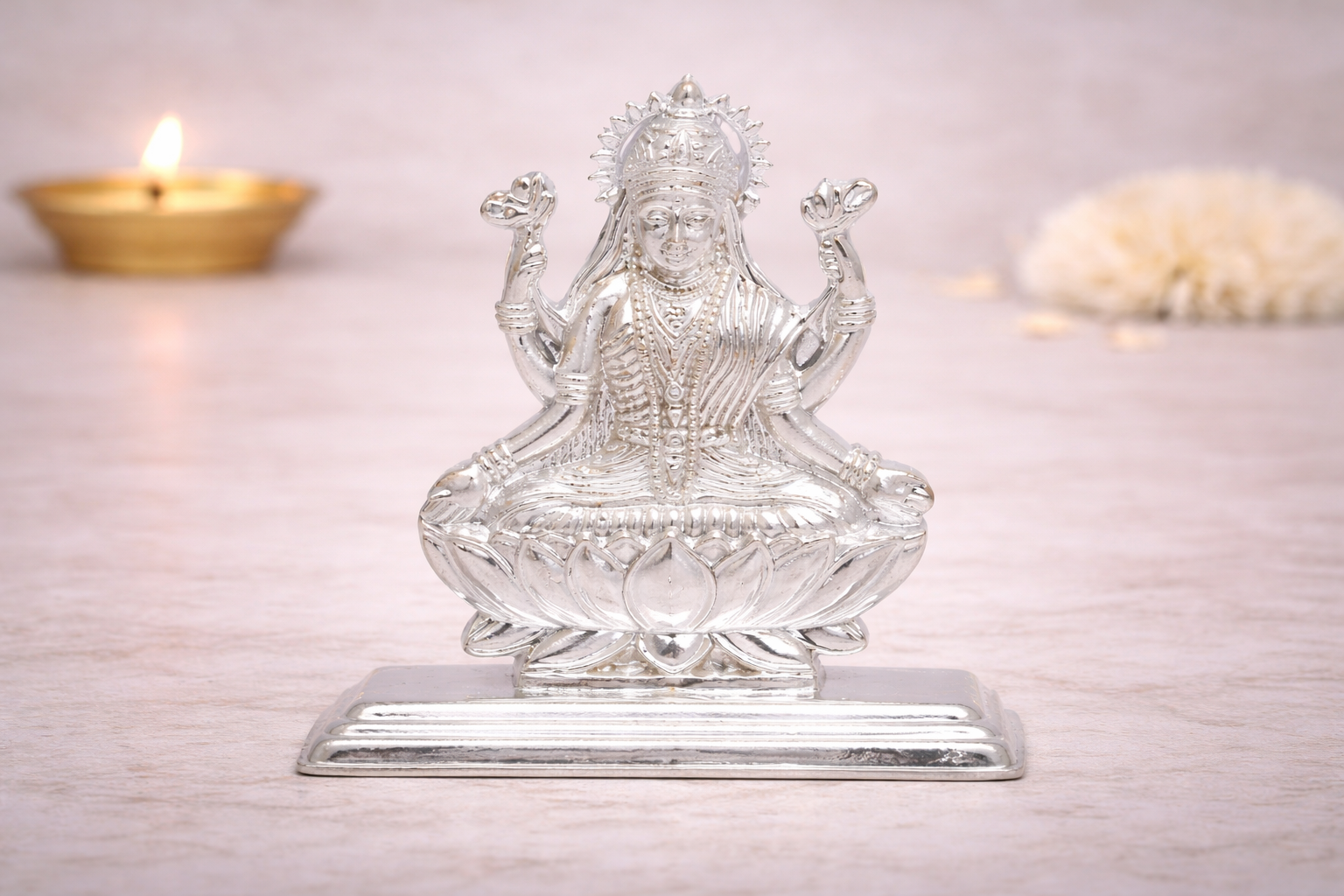 The Laxmi Casting Idol is an elegant and spiritually significant silver idol depicting Goddess Laxmi, the divine symbol of wealth, prosperity, abundance, and auspiciousness. Seated gracefully on a lotus base, the idol represents purity, stability, and continuous blessings, making it ideal for homes, offices, temples, lockers, and business establishments.