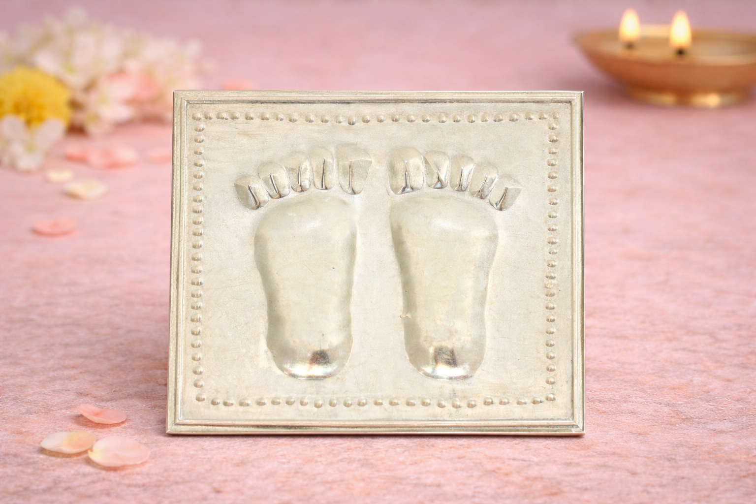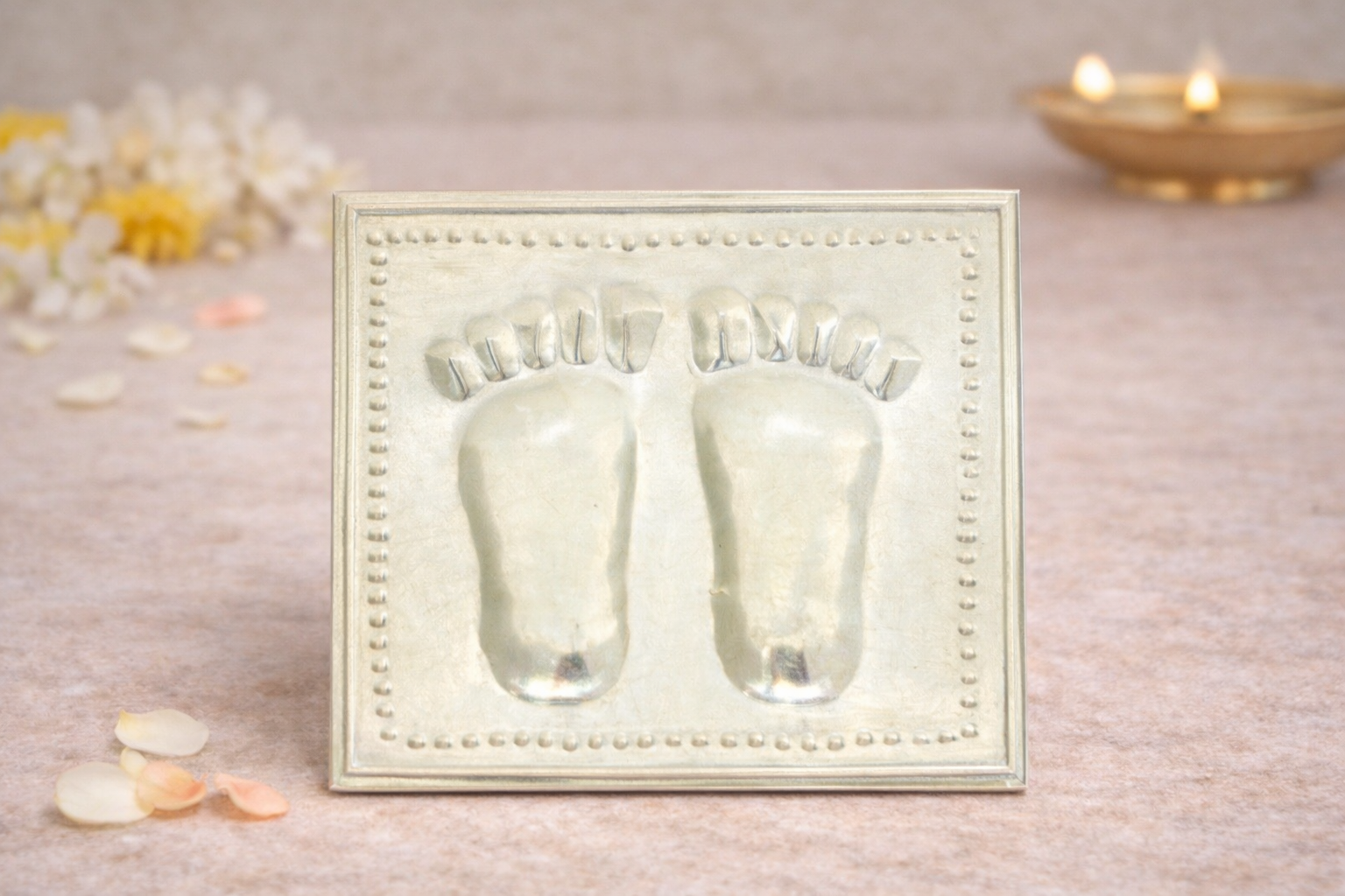The Laxmi Charan Silver Yantra is a sacred religious article symbolising prosperity, abundance, and the divine presence of Goddess Lakshmi. Representing the auspicious footprints (Charan Paduka) of the Goddess, this yantra is traditionally worshipped to invite wealth, good fortune, and positive energy into homes and workplaces.