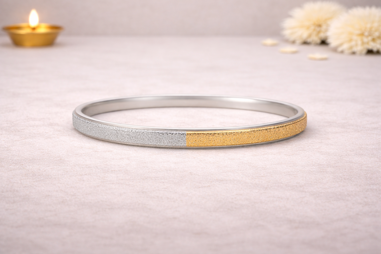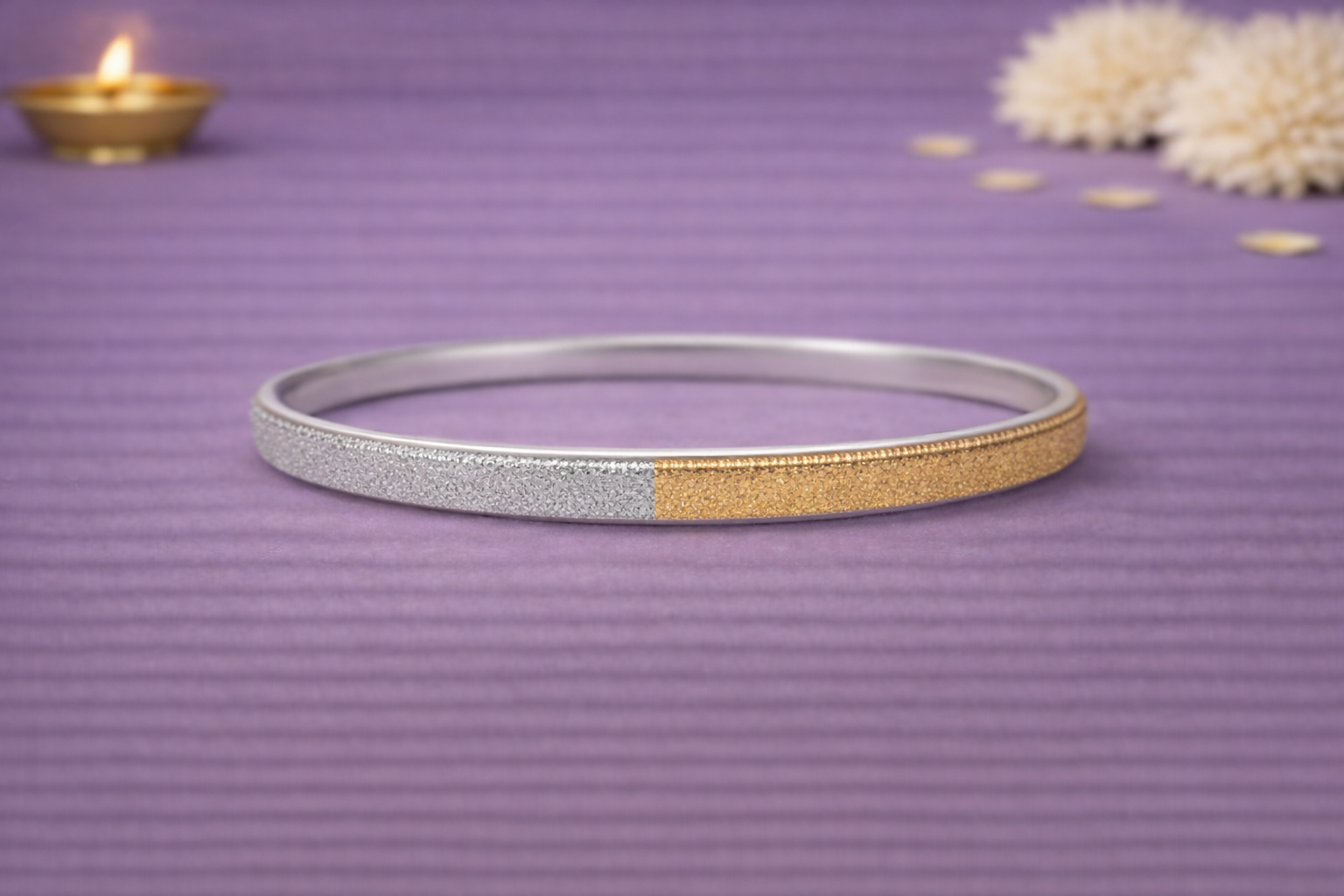 Crafted in 16KT silver purity, the kada showcases a natural silver finish complemented by finely textured detailing that enhances its visual character without any artificial enhancement. The solid circular construction ensures durability, while the smooth inner surface provides comfort for extended wear, making it suitable for daily use, professional settings, or understated statement styling.