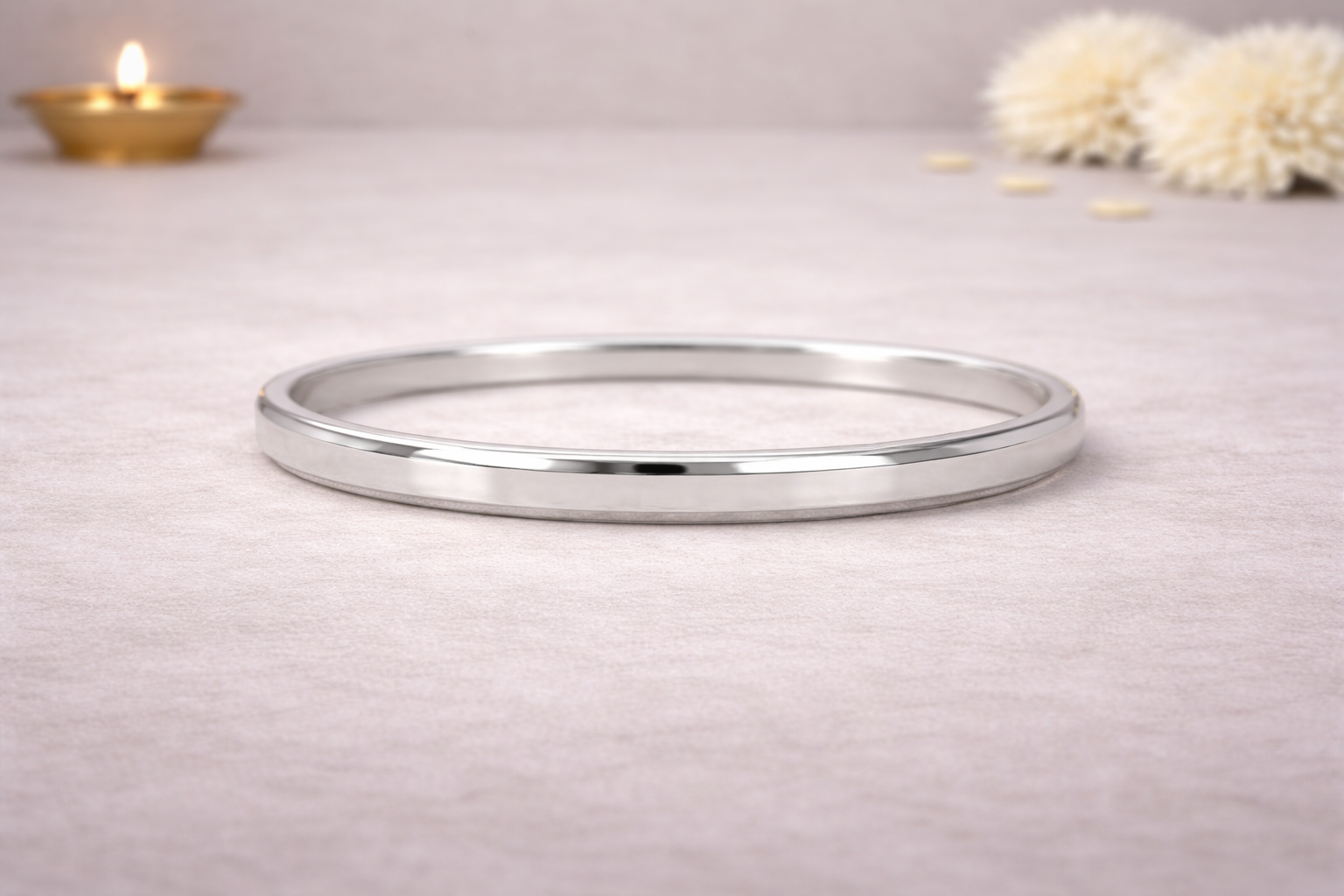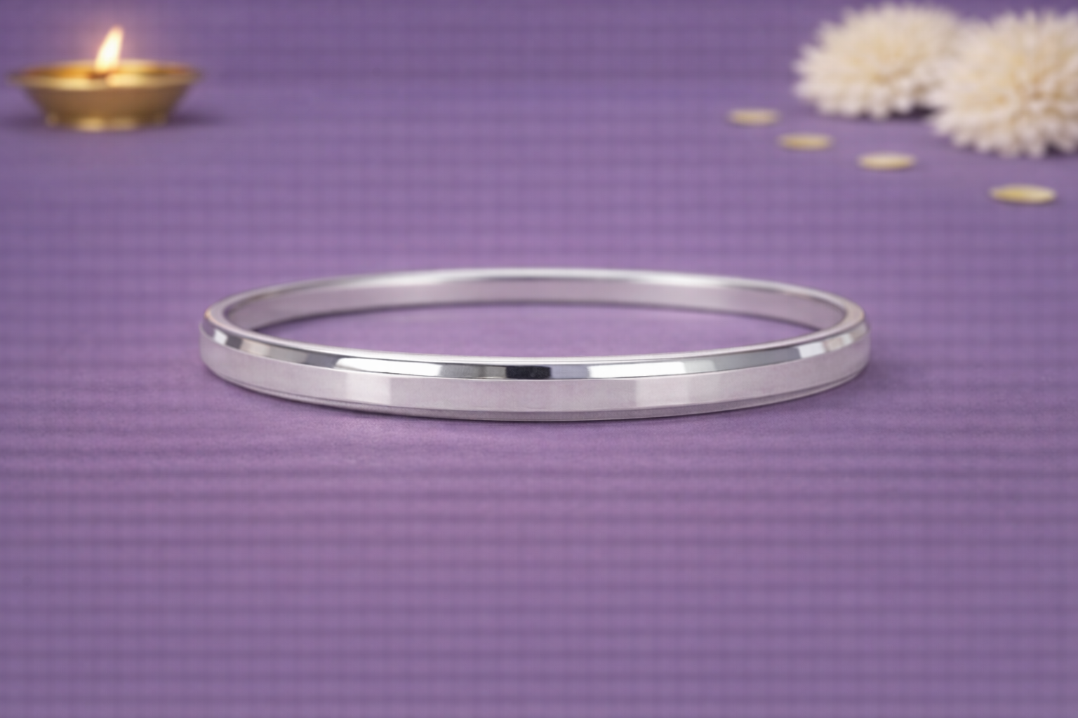 Crafted in 16KT silver purity, the kada retains a natural silver tone with a smooth, mirror-like finish achieved without any artificial enhancement. The solid construction ensures durability, while the seamless closed circular structure offers a comfortable and secure fit, suitable for prolonged daily use.