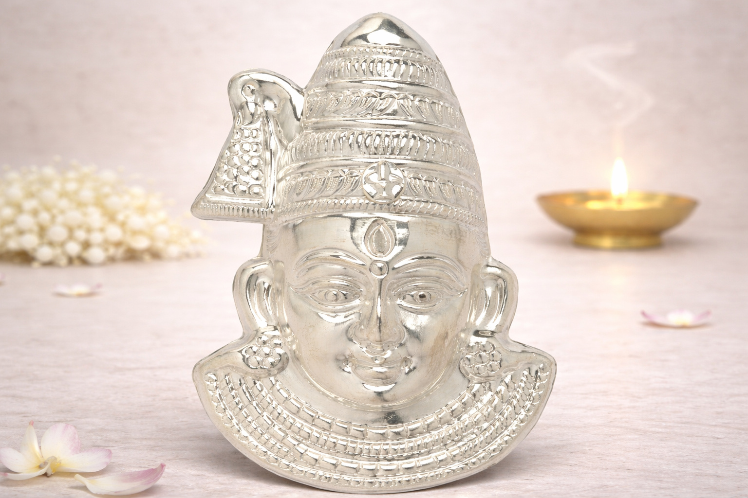 Available in multiple gram-based weight options, Mukhota 3 caters to diverse devotional and décor needs while maintaining consistent craftsmanship across all variants. This piece is also well-suited for gifting during religious occasions, temple inaugurations, and traditional ceremonies.