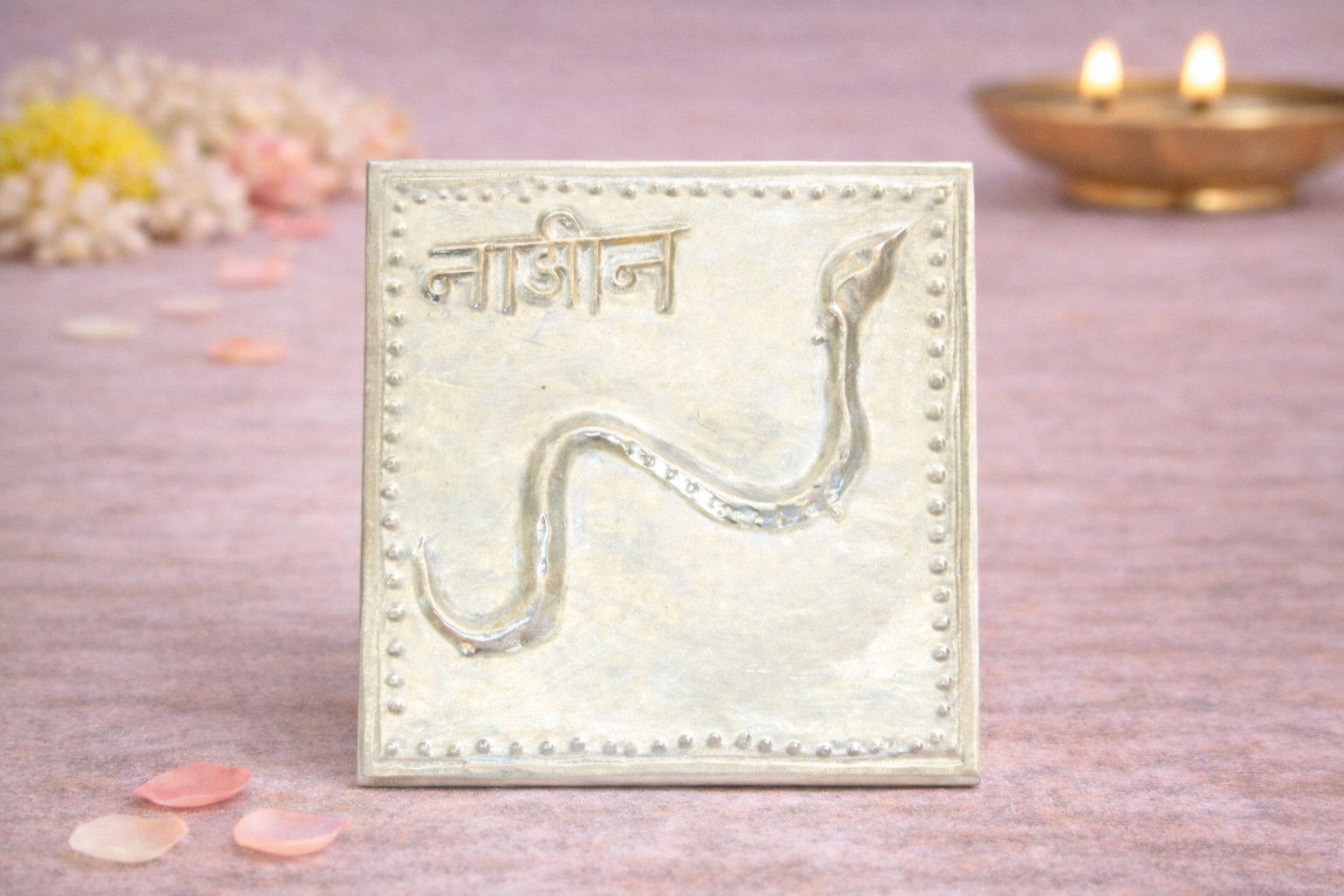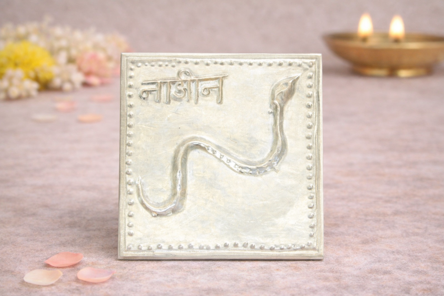 The Nag Nagin Silver Yantra is a spiritually powerful religious article symbolising protection, balance, fertility, and the harmonious union of divine energies in Hindu worship traditions. The sacred serpent form represents cosmic energy (Kundalini Shakti) and is traditionally associated with strength, safeguarding, and prosperity.