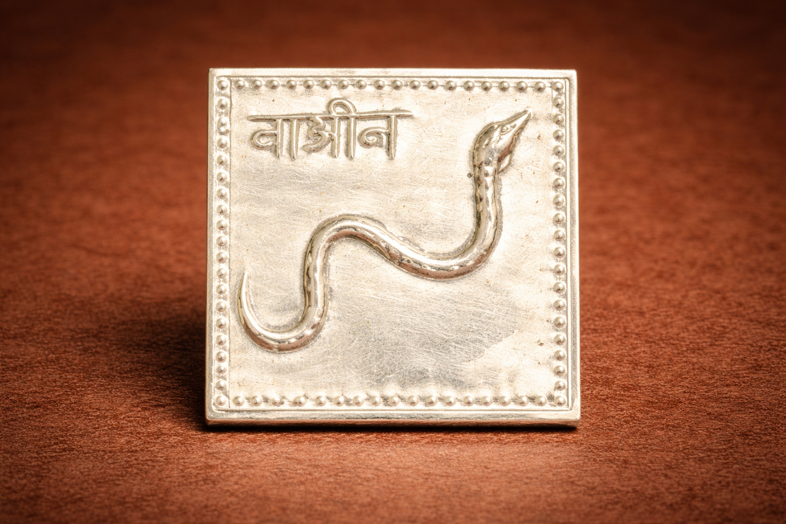 Expertly crafted with embossed detailing, the yantra features a symbolic snake motif that holds deep spiritual significance in puja rituals, vastu remedies, and yantra sadhana. Its compact, square form makes it ideal for placement in home mandirs, puja thalis, lockers, or sacred spaces without occupying excess space.