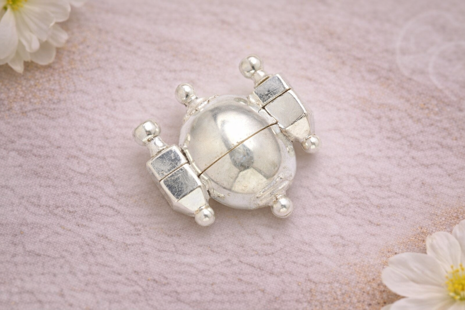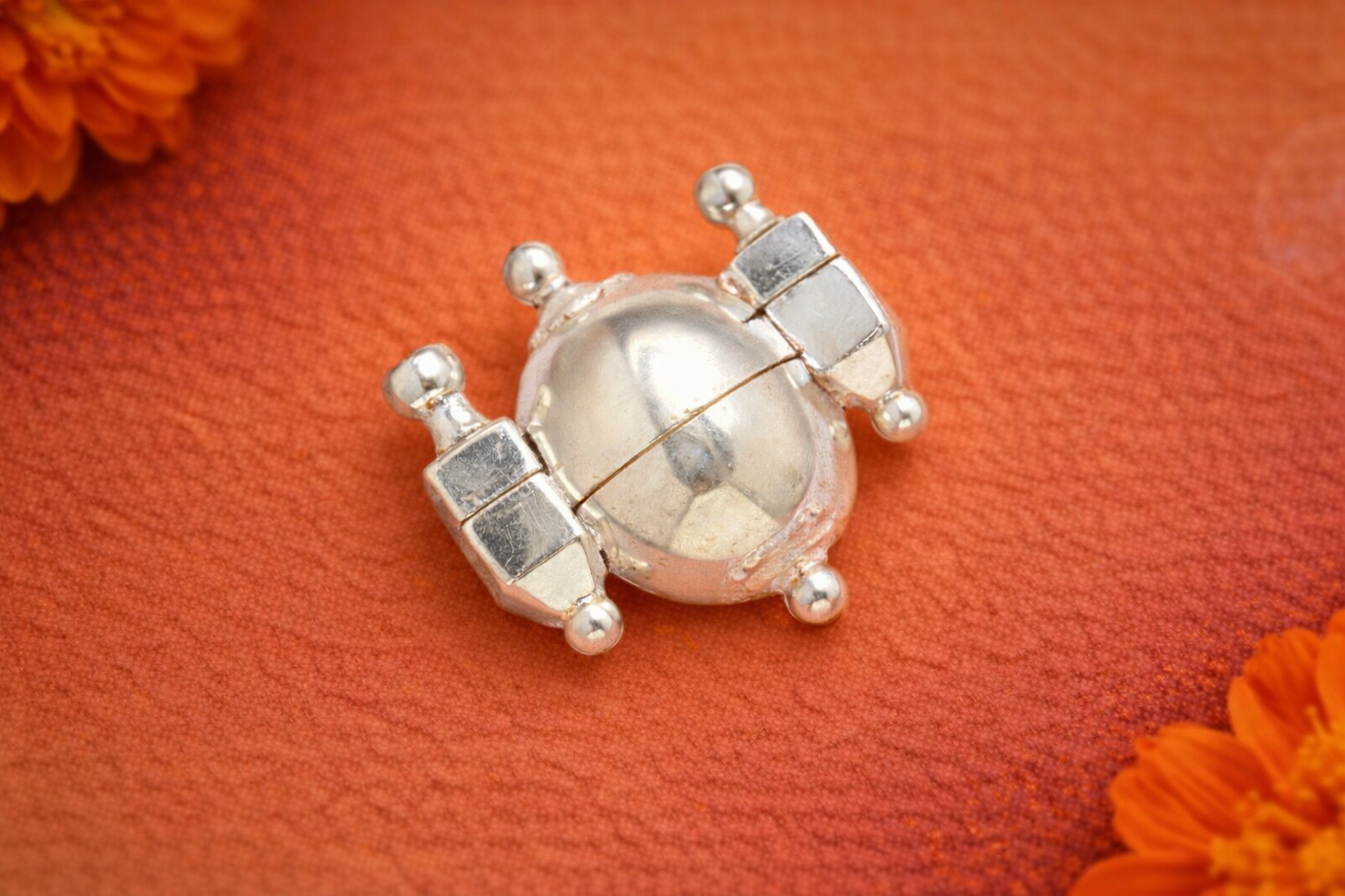 The Pendant Q Silver Religious Pendant is a compact devotional jewellery piece designed with a symmetrical, amulet-inspired structure that reflects traditional spiritual symbolism. The pendant features a central spherical form securely enclosed within a balanced metallic framework, accented with rounded end details that give it a distinctive and sacred appearance. Its structured geometry represents protection, faith, and continuity, making it suitable for everyday spiritual wear.