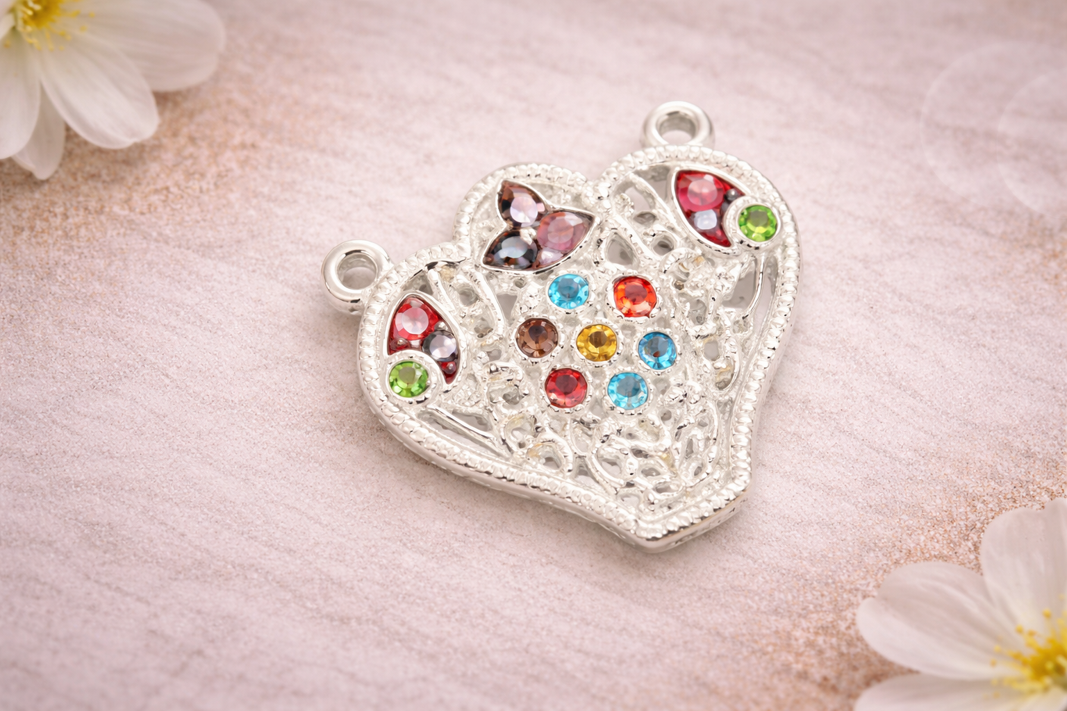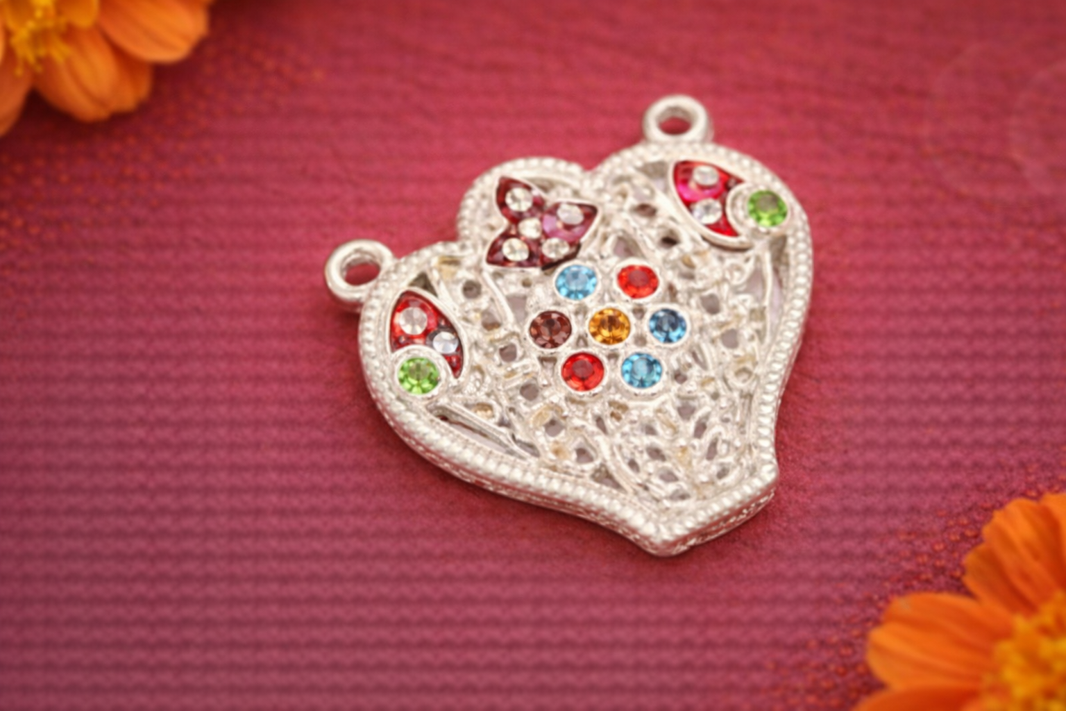 The Pendant R Silver Religious Pendant is an intricately crafted devotional jewellery piece designed to reflect faith, protection, and spiritual harmony. Featuring a heart-inspired form with delicate openwork detailing and carefully placed multicolour accents, this pendant symbolises devotion, positivity, and balance in a refined and elegant design.