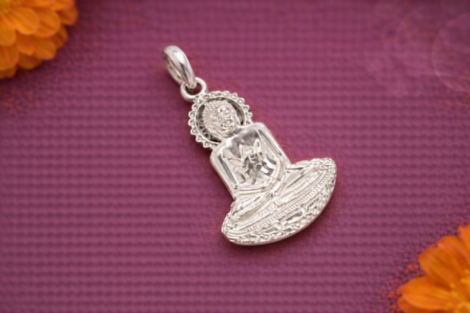 Crafted in 12KT silver purity, the pendant carries a natural silver finish that preserves the authenticity of the metal while highlighting the fine contours of the sculpture. The smooth surface and balanced weight ensure durability along with comfortable everyday wear. Designed to pair effortlessly with silver chains, this pendant is suitable for personal devotion, meditation practices, or thoughtful gifting.