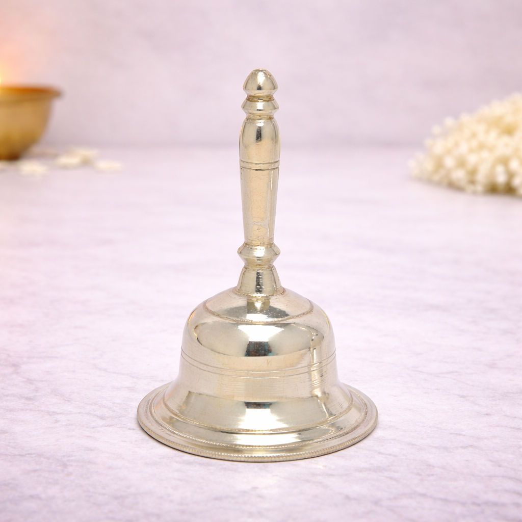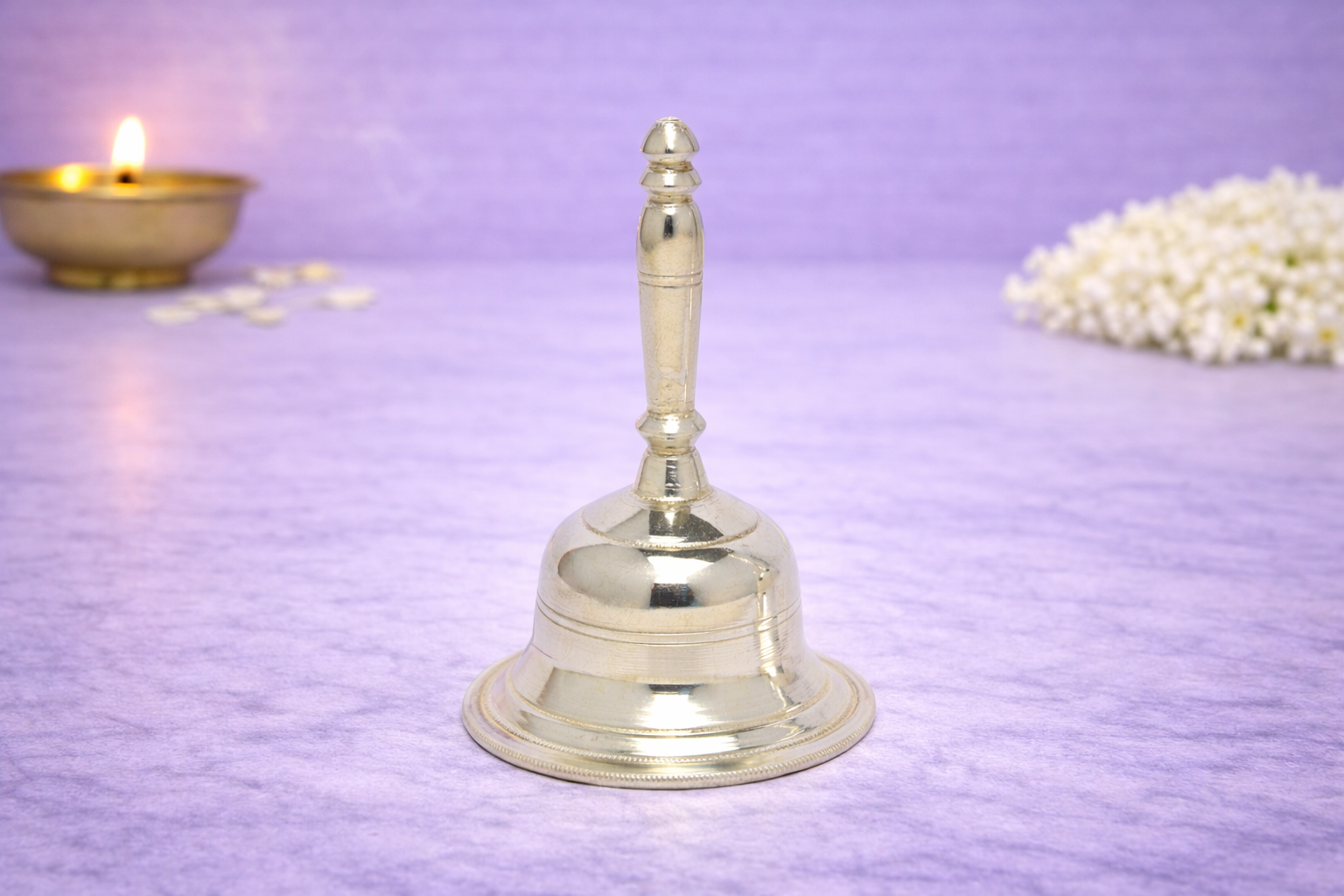 Crafted with a clean and timeless design, this ghanti features smooth contours and balanced proportions, reflecting traditional Indian silversmith craftsmanship. Its minimal yet refined form makes it suitable for all types of religious settings, from personal prayer spaces to larger temple environments.