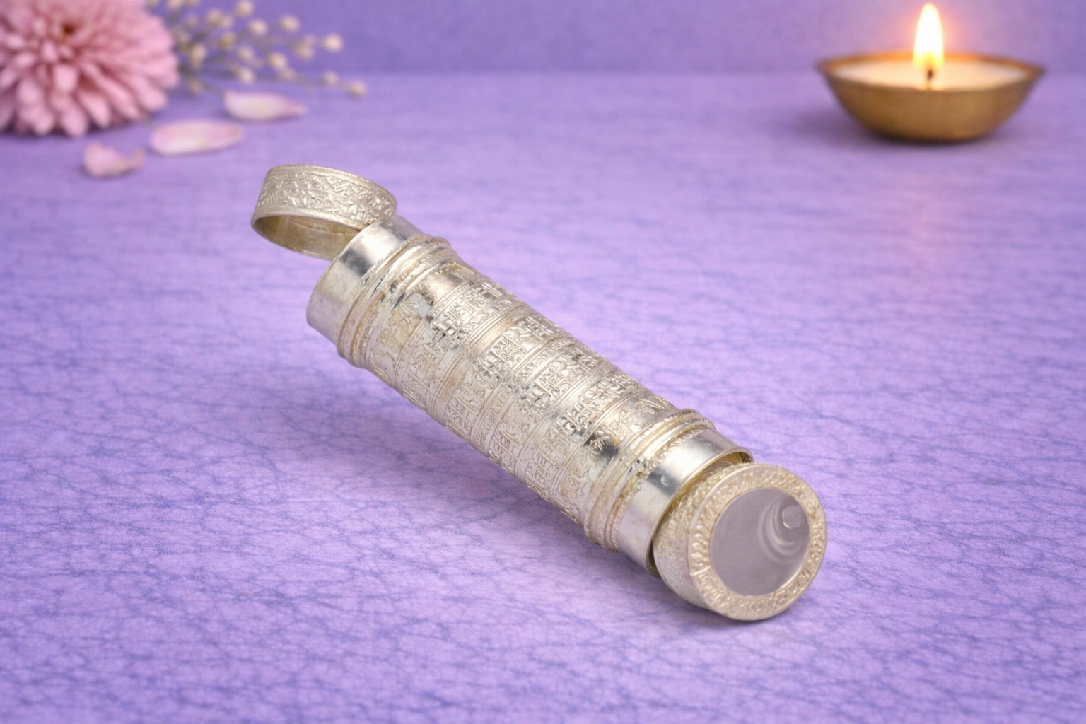 The Tobacco Dabi A Silver Nathdwara Item is a finely crafted religious accessory from the Nathdwara Items Collection, traditionally used in temple rituals and ceremonial worship. Designed with a compact cylindrical form and intricate silver engravings, this tobacco dabi reflects authentic Nathdwara craftsmanship while maintaining a refined and devotional aesthetic.