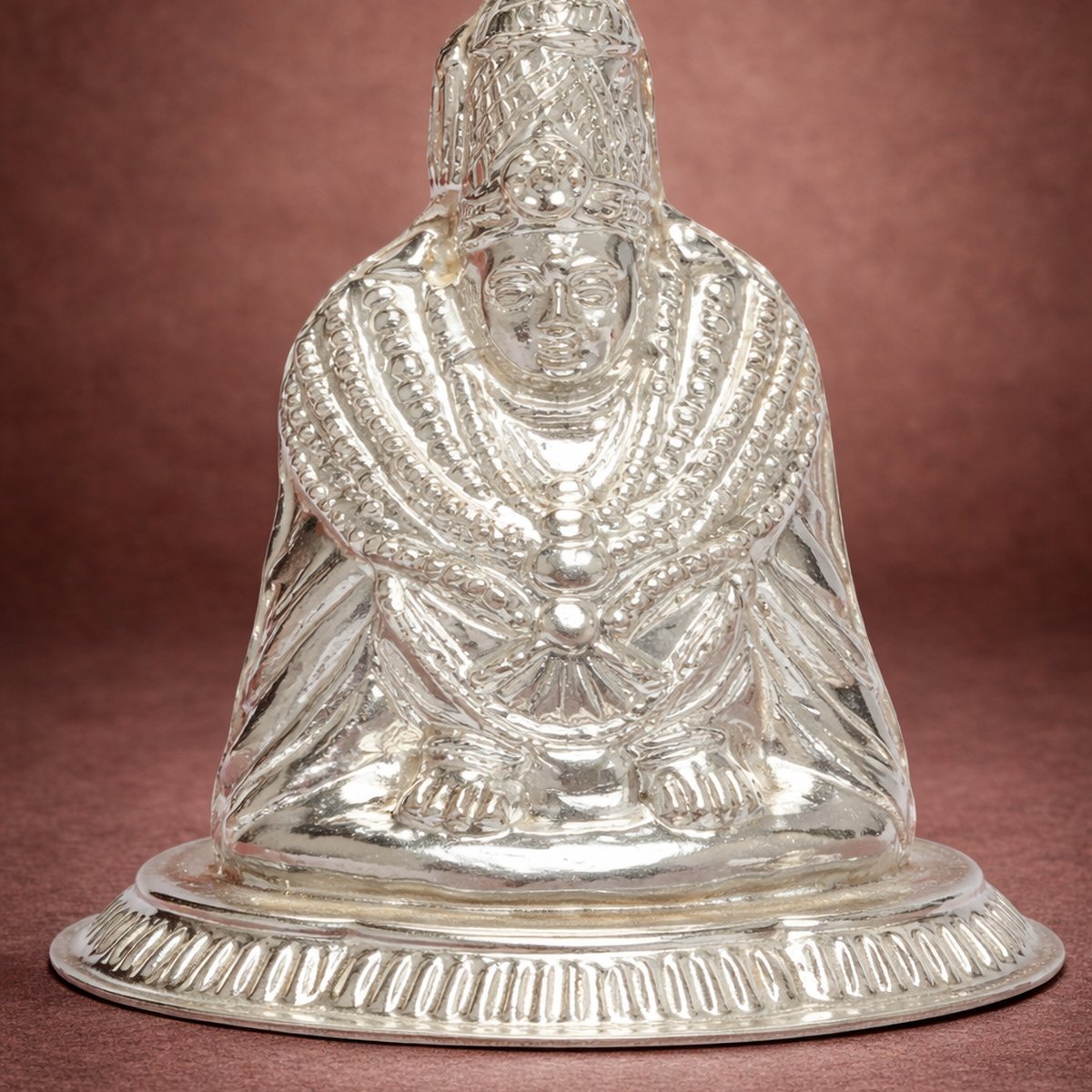 Crafted in 18KT silver purity, the idol features a natural silver finish that preserves its authentic metallic brilliance without artificial enhancement. The hollow construction provides a lighter form while maintaining visual richness and balance, making it suitable for placement in home mandirs, offices, temples, or as an auspicious gift for religious occasions, festivals, and spiritual ceremonies.