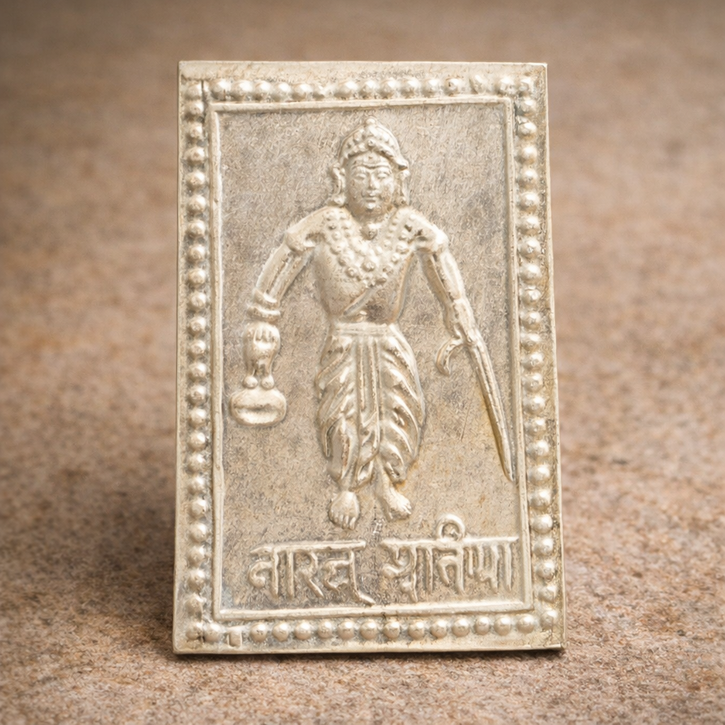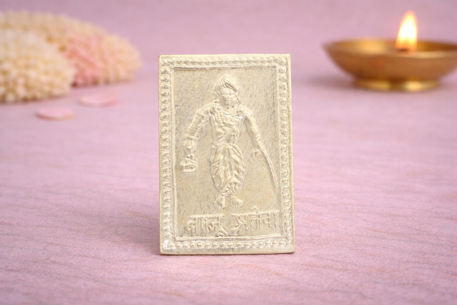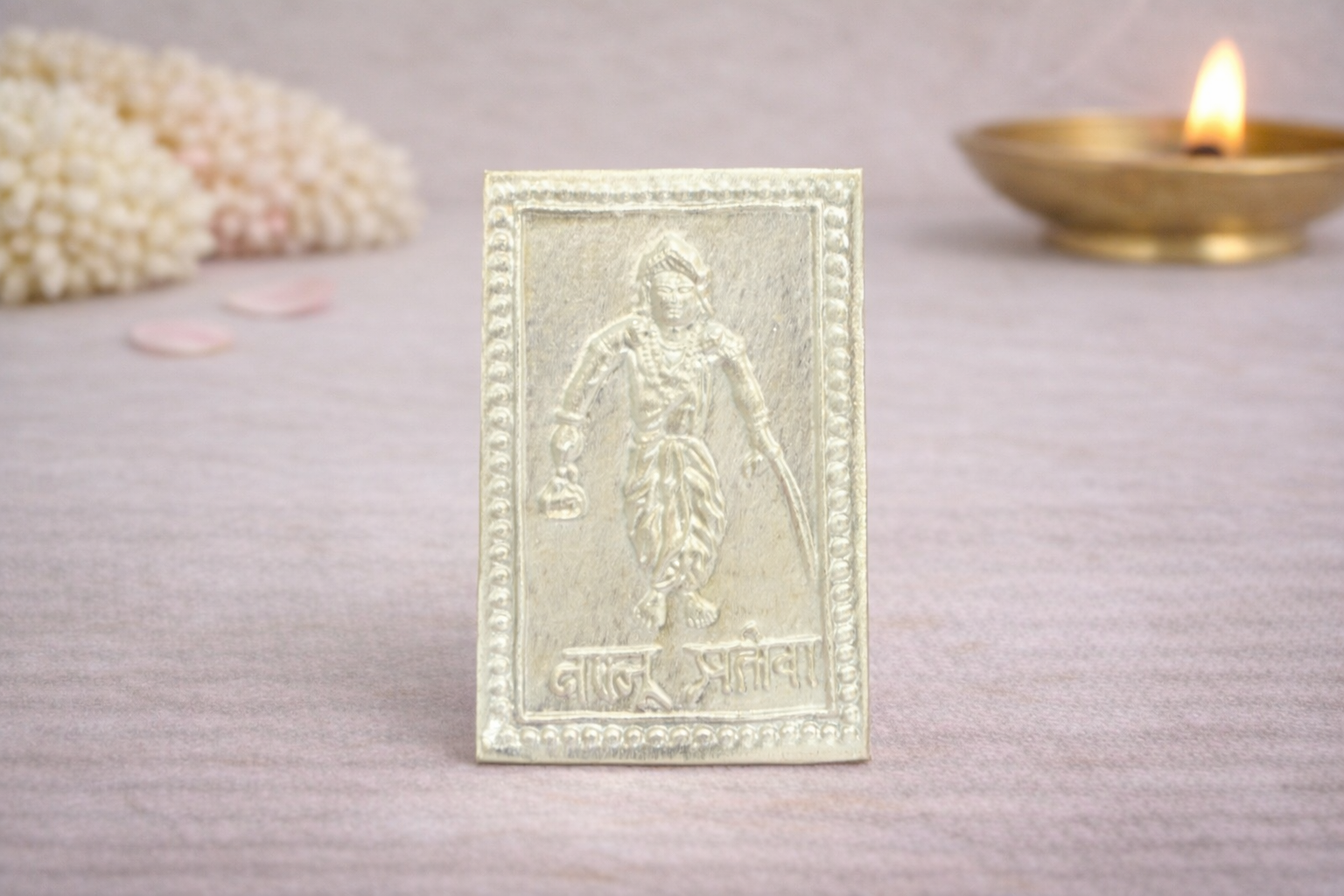 The Vastu Silver Yantra is a spiritually significant religious article designed to promote harmony, balance, and positive energy in accordance with traditional Vastu principles. Featuring a sacred engraved figure symbolising protection and righteous guidance, this yantra is believed to help neutralise negative influences while supporting peace, stability, and prosperity in living and working spaces.
